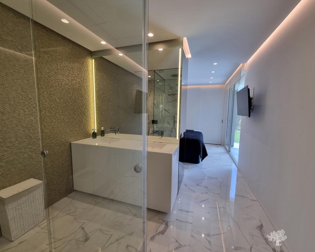 Moderne Erdgeschoss-Wohnung in der exklusiven Madroño Gemeinschaft in Las Colinas Golf & Country Club. Mit 3 Schlafzimmern, 2 Bädern, großzügigen Terrassen und atemberaubendem Golfblick. Privater Landschaftsgarten, Parkplatz in der Tiefgarage sowie ein Abstellraum. Komplettes Smart-Home-System (Domotik) zur Steuerung von Jalousien, Rollläden, Licht und Klimaanlage in der Immobilie. Fußbodenheizung in den Bädern, voll ausgestattete Küche mit allen Elektrogeräten. Offene Raumaufteilung mit Einbauschränken und hochwertiger Verarbeitung. Zur Anlage gehören auch zwei Außenpools, ein Spa/Fitnessraum und ein überdachter, beheizter Swimmingpool.