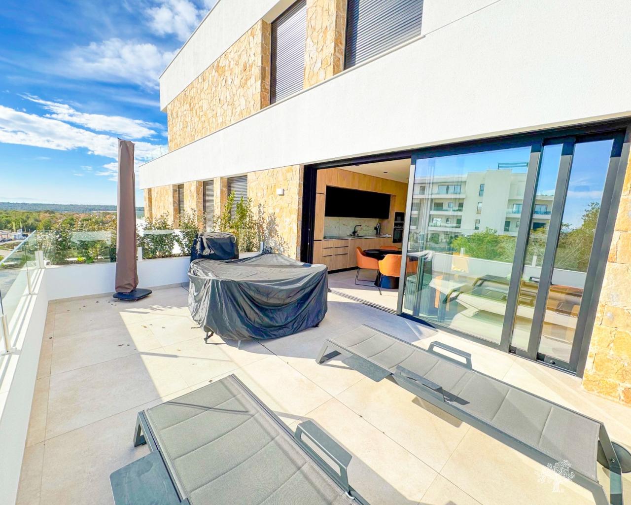 Modernes Apartment im 1. Stock der Wohnanlage Kumquat im Las Colinas Golf & Country Club. Mit 2 Schlafzimmern, 2 Bädern, großer Terrasse und freiem Blick auf die umliegenden Wälder und Grünflächen. Dieses voll möblierte Anwesen bietet hochwertige Haushaltsgeräte in der Küche, Klimaanlage (warm/kalt) sowie elektrische Fußbodenheizung in den Bädern, elektrische Rollläden in allen Räumen. Tiefgaragenstellplatz und Abstellraum sowie Zugang zum Gemeinschaftspool. Einfacher Zugang per Aufzug zum Pool, zur Garage, zum Grundstück und zum Haupteingang. Sie können das Clubhaus (Golfplatz) und alle lokalen Dienstleistungen bequem zu Fuß in etwa 15 Minuten oder mit dem Auto in 2 Minuten erreichen. Die Strände von Campoamor „La Glea“, wo Sie den privaten Strandclub „Wow Beach“ von Las Colinas finden, sind ebenfalls nur 15 Autominuten entfernt, ebenso wie viele weitere weiße Sandstrände und natürlich Einkaufszentren, Restaurants/Bars, Supermärkte und Unterhaltungsmöglichkeiten.