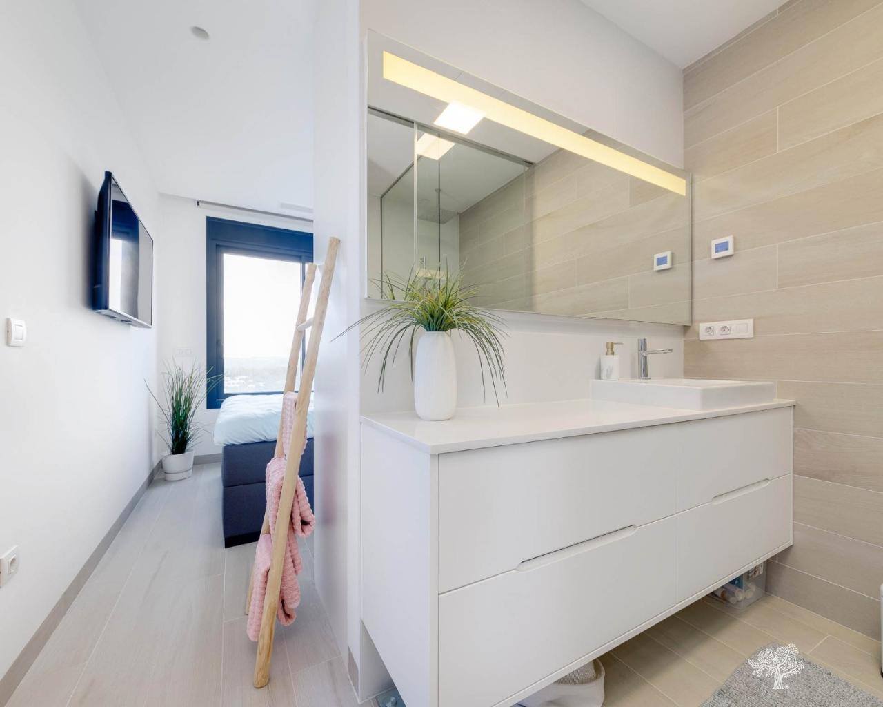 Eine moderne, nach Süden ausgerichtete Wohnung mit 2 Schlafzimmern und 2 Badezimmern im zweiten Stock in der Hinojo-Gemeinschaft im Las Colinas Golf Resort (Alicante). Die Hinojo Gemeinschaft befindet sich auf einem der höchsten Punkte in Las Colinas Golf Resort mit Blick auf den mediterranen Wald und die atemberaubendsten Sonnenuntergänge. Die Gemeinschaftsbereiche in der Hinojo Community umfassen wunderschön angelegte Gärten, einen großen Gemeinschaftspool und Entspannungsbereiche, die von Palmen und einheimischer Vegetation umgeben sind.