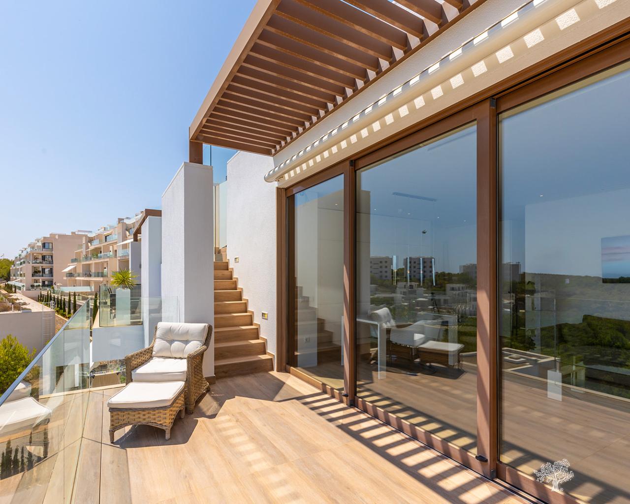 Acacia I Penthouse mit 2 Schlafzimmern, 2 Bädern, großzügiger Terrasse und privatem Solarium im Las Colinas Golf & Country Club. Modernes Design-Apartment mit freiem Blick auf das Meer und den mediterranen Wald sowie die Grünfläche. Südterrasse und große private Dachterrasse. Offener Wohn- und Küchenbereich mit zentraler Klimaanlage warm/kalt, elektrischer Fußbodenheizung in den Bädern und elektrischen Außenrollläden in allen Schlafzimmern. Zur Wohnung gehören außerdem ein privater Parkplatz in der Gemeinschaftsgarage und ein privater Abstellraum neben dem Parkplatz. Die Anlage bietet außerdem einen wunderschön gestalteten Pool und angelegte Gärten. Die Immobilie wird voll möbliert verkauft und verfügt derzeit über eine Lizenz zur touristischen Vermietung für alle, die eine Investition in das Objekt planen.