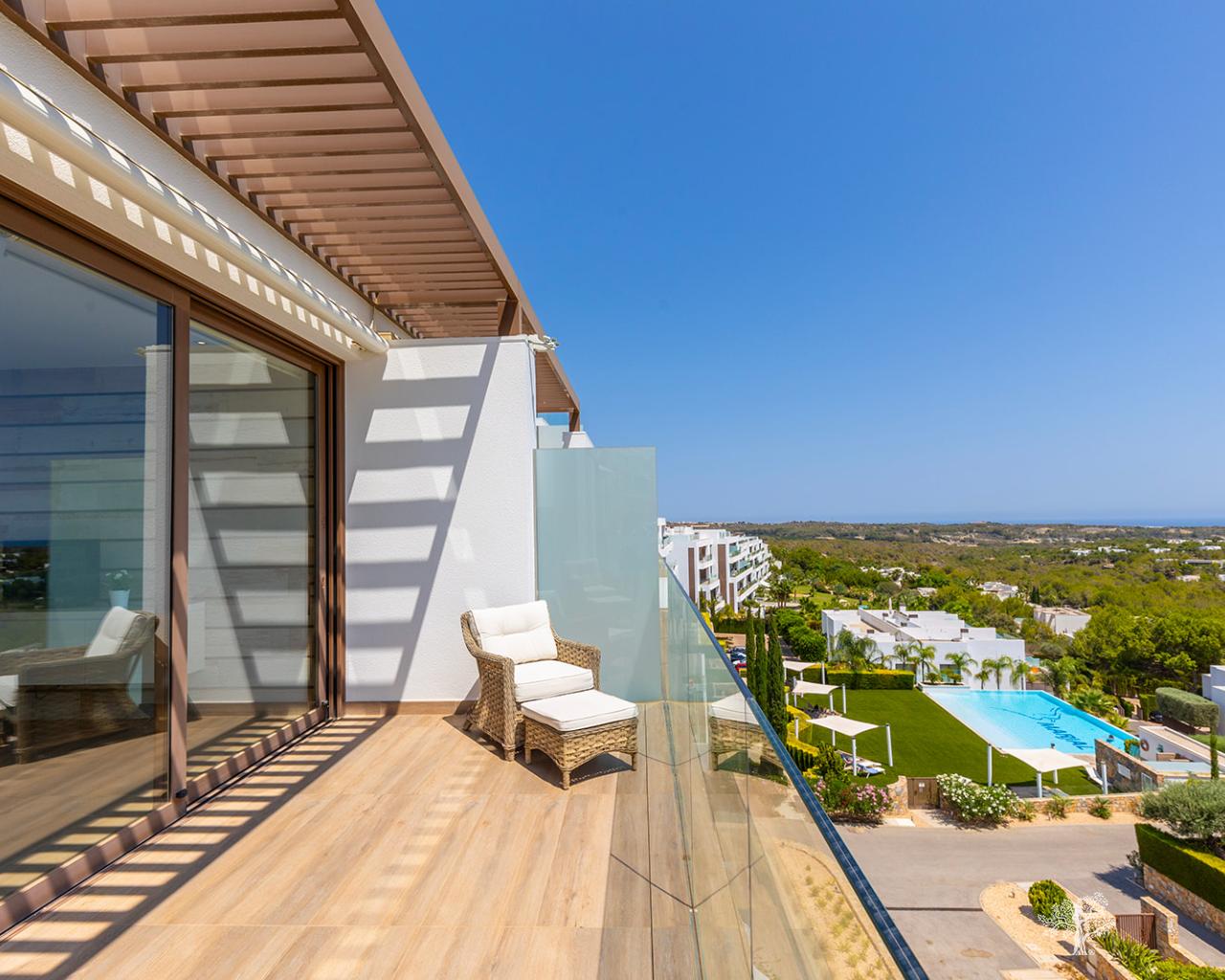 Acacia I Penthouse mit 2 Schlafzimmern, 2 Bädern, großzügiger Terrasse und privatem Solarium im Las Colinas Golf & Country Club. Modernes Design-Apartment mit freiem Blick auf das Meer und den mediterranen Wald sowie die Grünfläche. Südterrasse und große private Dachterrasse. Offener Wohn- und Küchenbereich mit zentraler Klimaanlage warm/kalt, elektrischer Fußbodenheizung in den Bädern und elektrischen Außenrollläden in allen Schlafzimmern. Zur Wohnung gehören außerdem ein privater Parkplatz in der Gemeinschaftsgarage und ein privater Abstellraum neben dem Parkplatz. Die Anlage bietet außerdem einen wunderschön gestalteten Pool und angelegte Gärten. Die Immobilie wird voll möbliert verkauft und verfügt derzeit über eine Lizenz zur touristischen Vermietung für alle, die eine Investition in das Objekt planen.