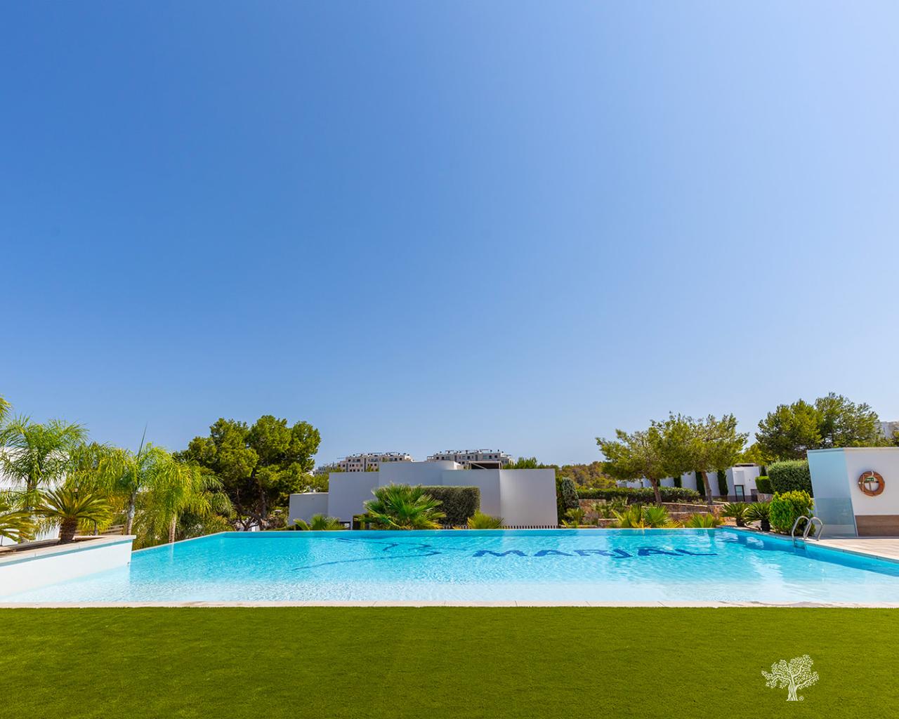 Acacia I Penthouse mit 2 Schlafzimmern, 2 Bädern, großzügiger Terrasse und privatem Solarium im Las Colinas Golf & Country Club. Modernes Design-Apartment mit freiem Blick auf das Meer und den mediterranen Wald sowie die Grünfläche. Südterrasse und große private Dachterrasse. Offener Wohn- und Küchenbereich mit zentraler Klimaanlage warm/kalt, elektrischer Fußbodenheizung in den Bädern und elektrischen Außenrollläden in allen Schlafzimmern. Zur Wohnung gehören außerdem ein privater Parkplatz in der Gemeinschaftsgarage und ein privater Abstellraum neben dem Parkplatz. Die Anlage bietet außerdem einen wunderschön gestalteten Pool und angelegte Gärten. Die Immobilie wird voll möbliert verkauft und verfügt derzeit über eine Lizenz zur touristischen Vermietung für alle, die eine Investition in das Objekt planen.