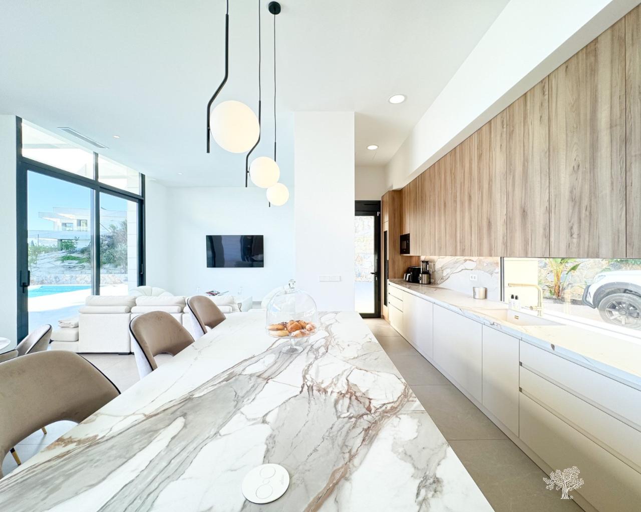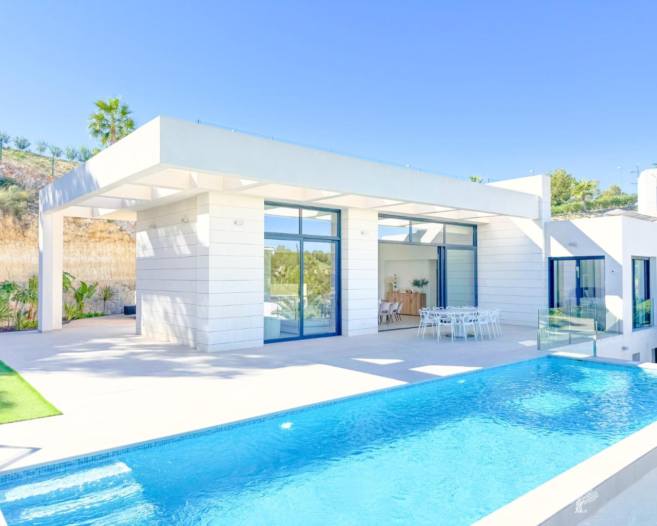 Luxuriöse freistehende Villa in der Wohnanlage Madroño Las Colinas Golf mit 5 Schlafzimmern, 4 Bädern, Kinoraum, Garage, Keller und privatem Pool mit atemberaubendem Blick auf den Golfplatz. Private Lage in zweiter Reihe zum Golfplatz. 180°-Panoramablick von einer großen Terrasse im Erdgeschoss sowie von weiteren Terrassen im Obergeschoss. Geräumiger Keller mit 3 Schlafzimmern, 2 Bädern, Kino und Waschküche. Private Garage für zwei Autos und Platz für mehrere weitere. Moderne Küche mit hochwertigen Geräten und modernem Design mit hochwertigen Oberflächen und vielen besonderen Ausstattungsmerkmalen. Diese Immobilie befindet sich in der exklusiven Golfanlage Las Colinas und bietet einen herrlichen Rückzugsort, um von Ihrem Heimbüro aus zu arbeiten oder sich mit Ihrer Familie zu entspannen. Nur wenige Minuten von allen lokalen Annehmlichkeiten sowie weiteren Golfplätzen, einladenden Buchten mit weißen Sandstränden und Geschäften entfernt.