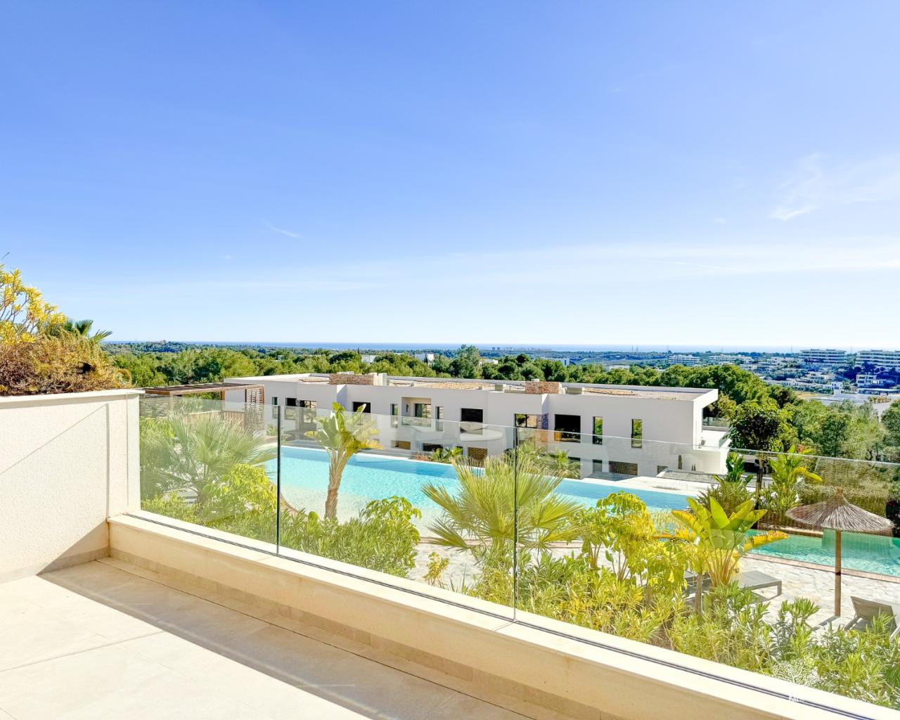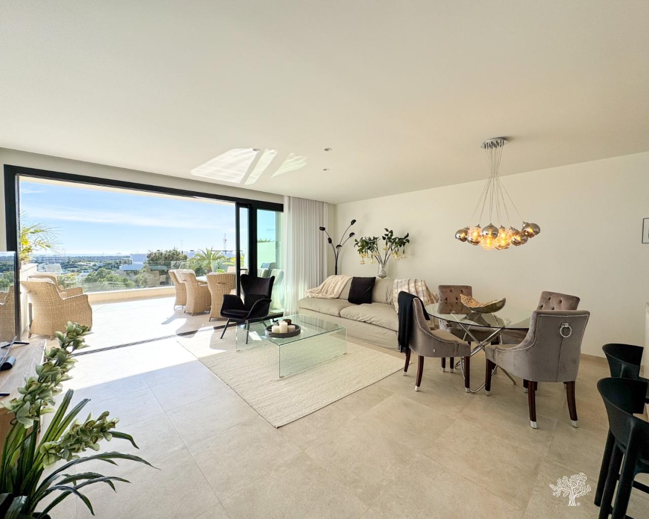 Wiederverkaufswohnung mit 3 Schlafzimmern, 2 Bädern, geräumigen Terrassen und atemberaubender Aussicht auf den Golfplatz und das Meer in der Wohnanlage Limonero 29 Las Colinas Golf. Exklusive Lage mit zwei Gemeinschaftspools (einer davon beheizt). Die Immobilie wird mit allen Elektrogeräten, Klimaanlage (warm/kalt) und Fußbodenheizung in allen Bädern sowie elektrischen Außenrollläden in den Schlafzimmern, LED-Leuchten, Smart-Home-Funktionen und Aufzugszugang zur privaten Garage und zum Abstellraum verkauft.