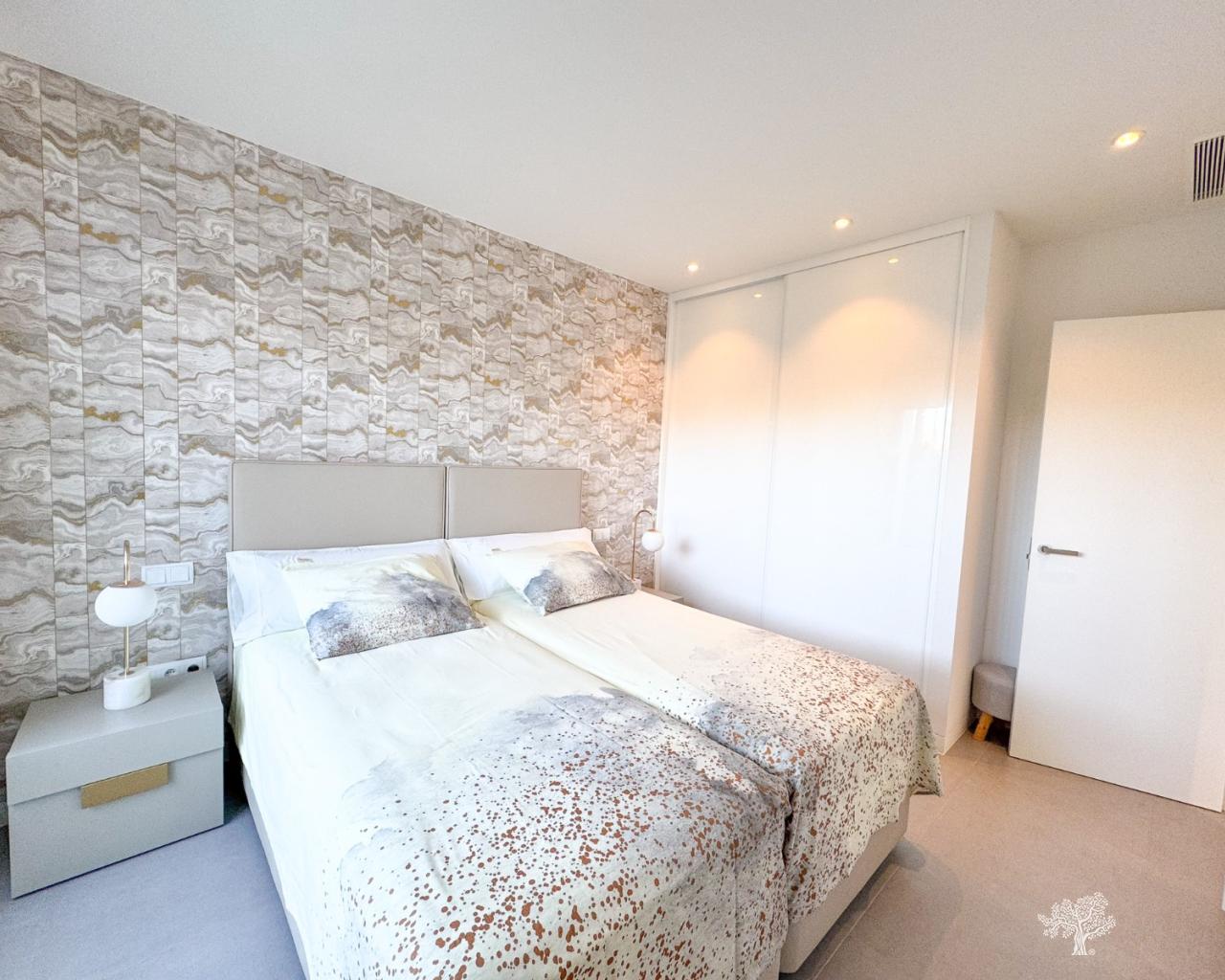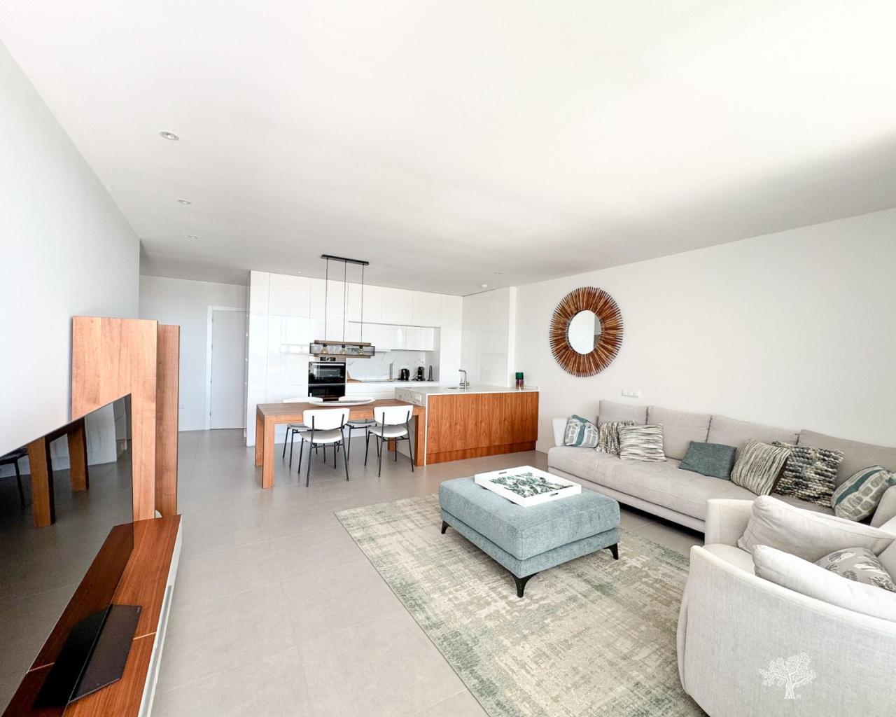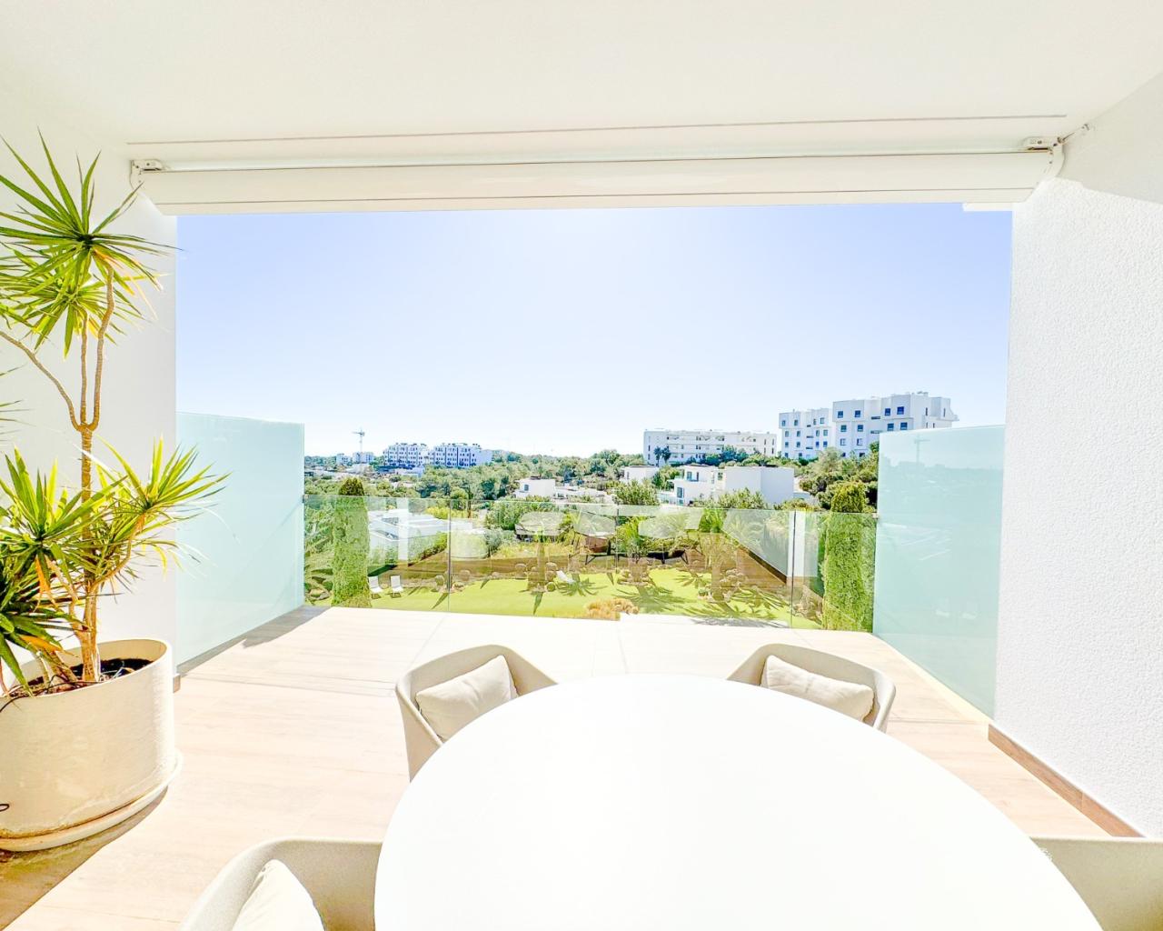 Moderne Erdgeschosswohnung mit 2 Schlafzimmern, 2 Bädern und 2 Terrassen in der Wohnanlage Naranjo, Las Colinas Golf. Großzügige Terrasse mit schönem Blick auf die Grünanlage und das Meer. Privater Garten/Terrasse im hinteren Bereich für mehr Privatsphäre und Schatten im Sommer. Tiefgaragenstellplatz und Abstellraum sowie gepflegte Gemeinschaftsgärten und ein Pool gehören ebenfalls zur Wohnung. Das Gebäude Naranjo wurde 2025 neu gestrichen und befindet sich in einem sehr guten Zustand. Die Wohnung wird komplett möbliert verkauft.
