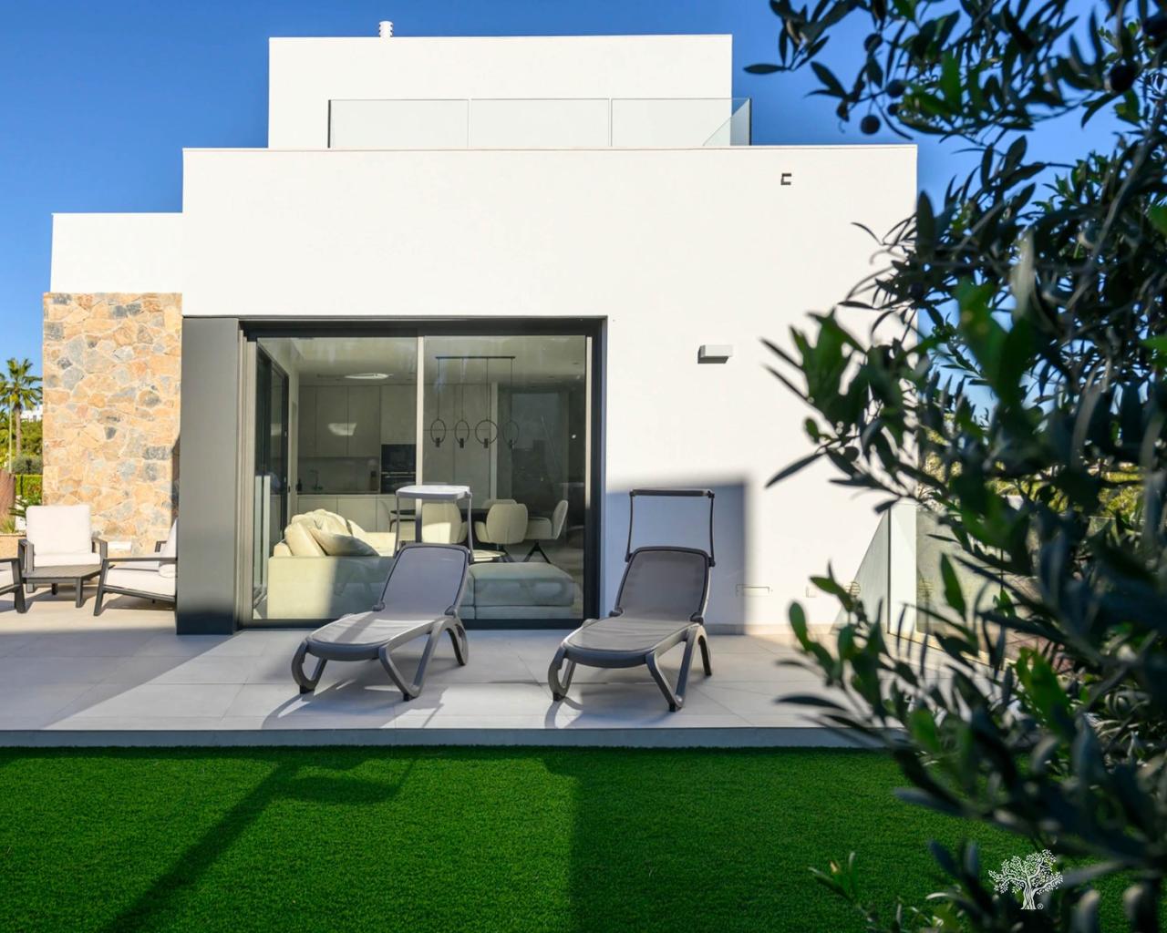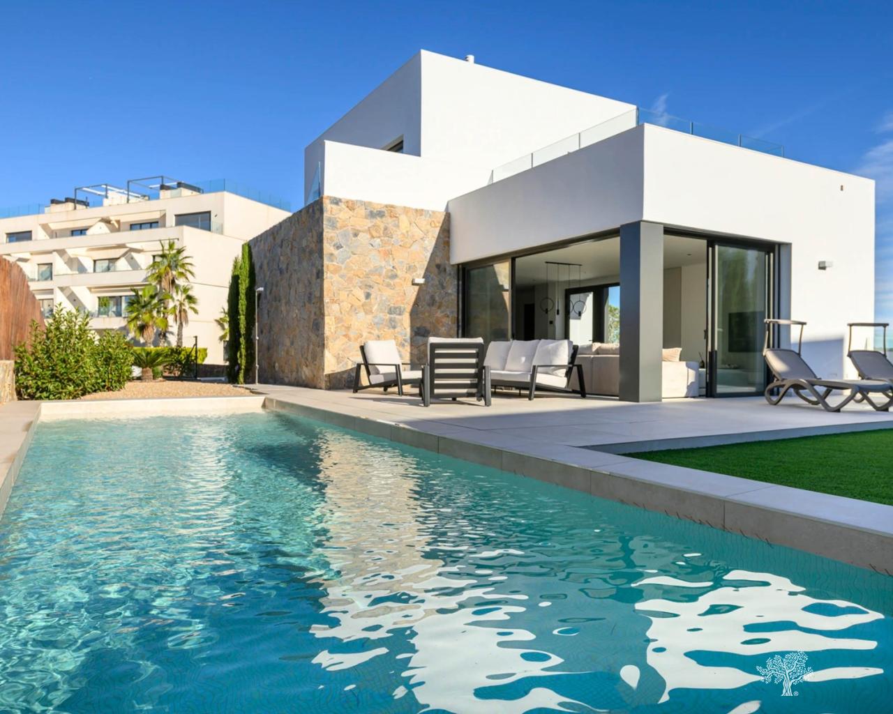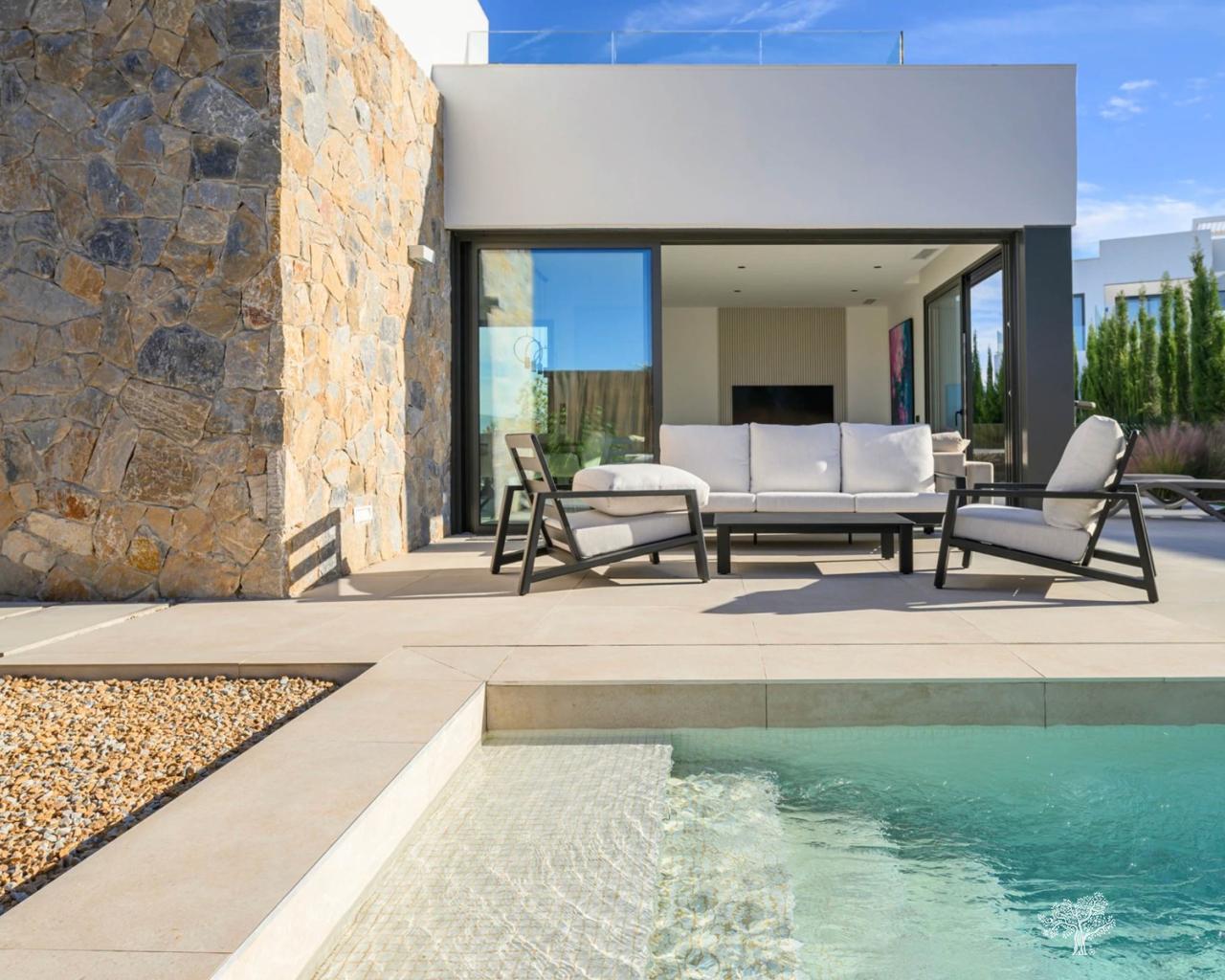 Moderna villa independiente con 3 dormitorios y piscina privada situada en la comunidad Orquidea, en Las Colinas Golf. Disponible totalmente amueblada, construida en dos niveles con amplias terrazas y vistas despejadas. Gran garaje/sótano y orientación perfecta para el sol de invierno.