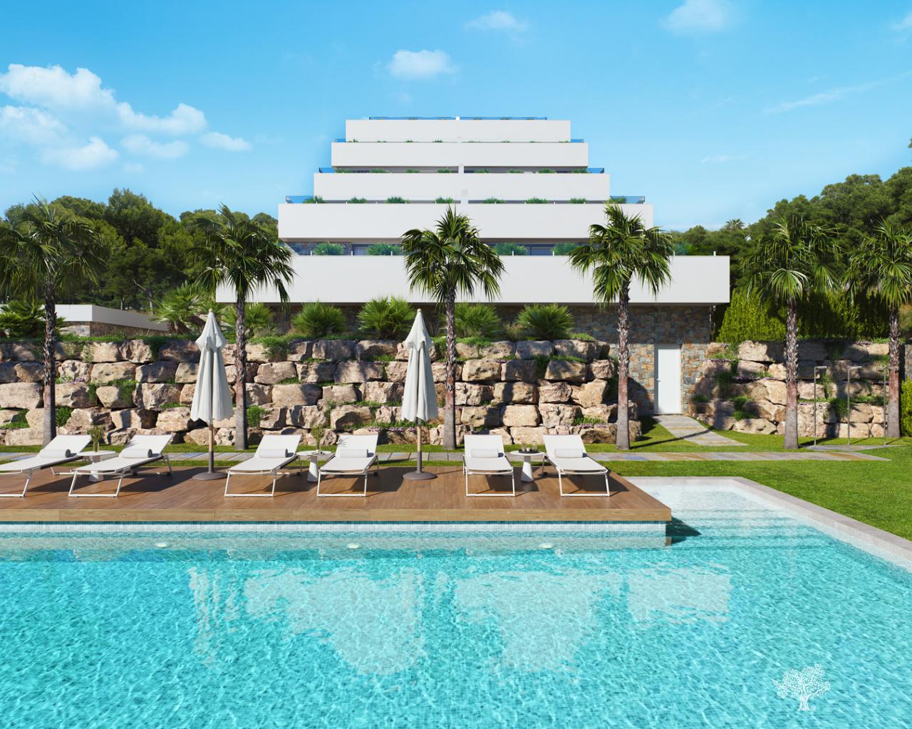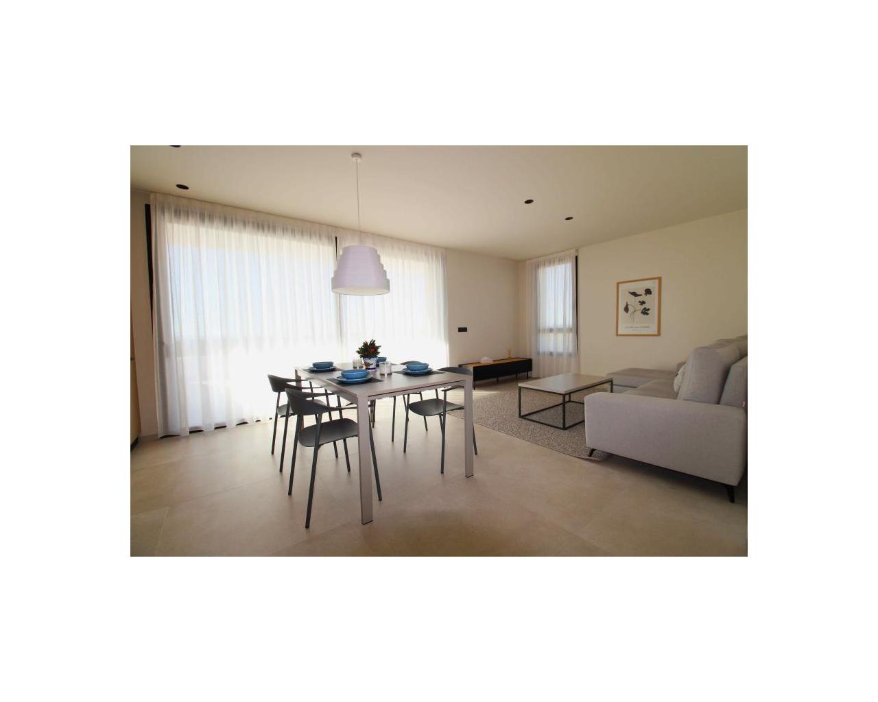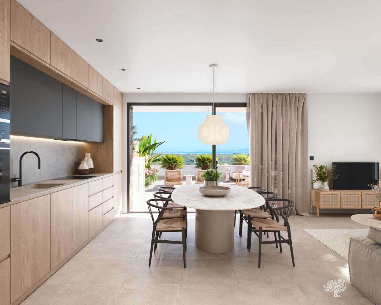 Apartamento moderno "Kumquat" de 3 dormitorios, amplia terraza, cerca del campo de golf en Las Colinas Golf. Acabados de calidad, garaje y trastero con cada unidad. Rodeado de reserva natural y bosque mediterráneo con orientación sur, suroeste. Este apartamento se vende completamente amueblado, incluidos todos los electrodomésticos en la cocina, A/C frío/calor y calefacción por suelo radiante eléctrico en ambos baños. Acceso por ascensor a la propiedad, así como a la piscina y al garaje/trastero. Vistas abiertas al bosque y al mar, incluida La Manga.