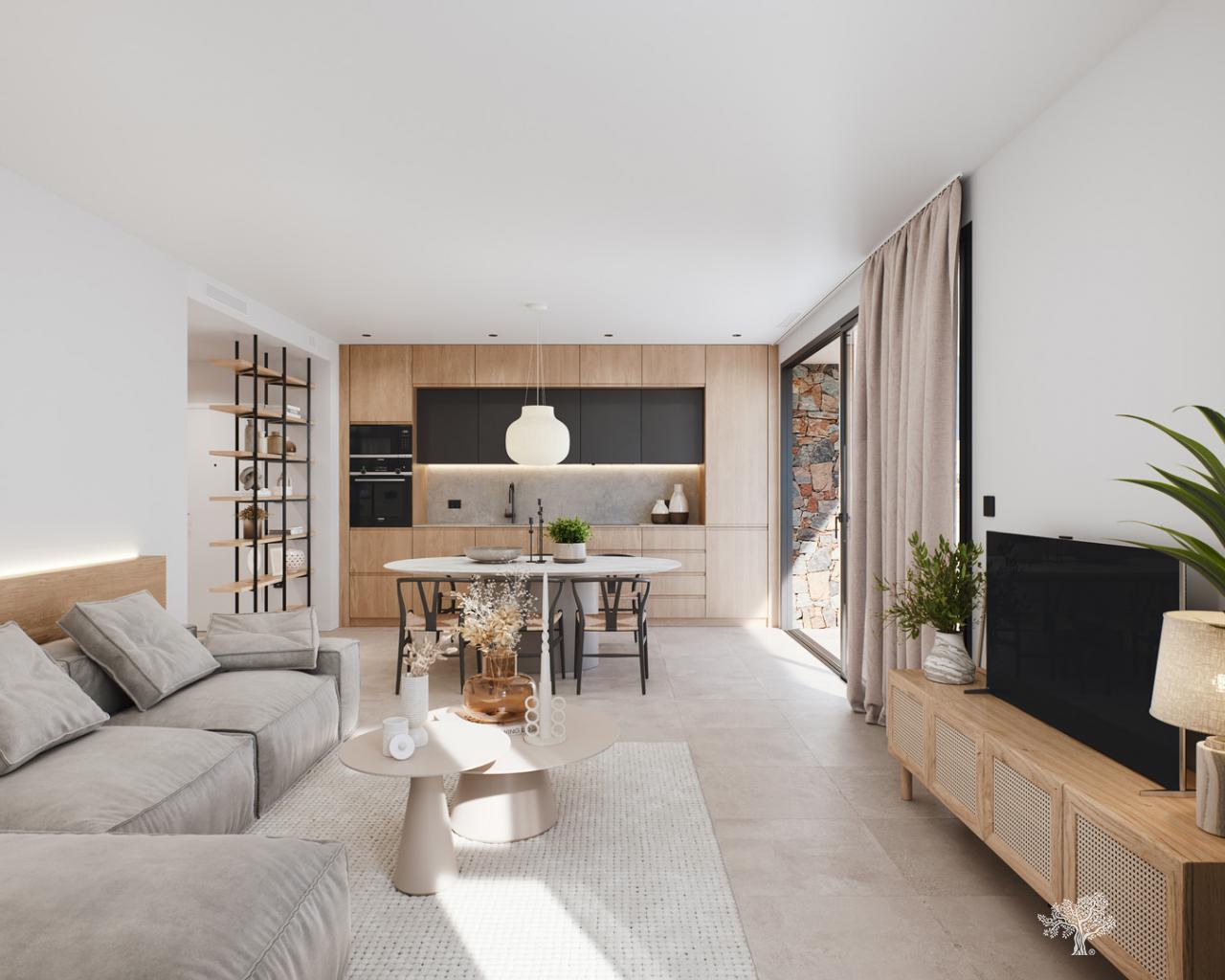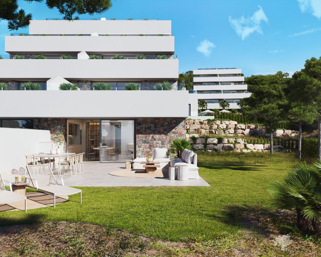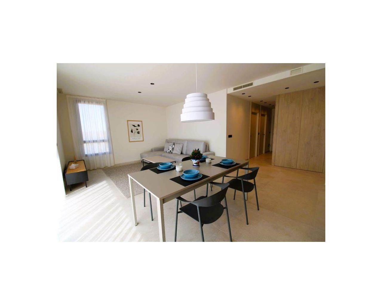 Apartamento moderno "Kumquat" de 3 dormitorios, amplia terraza, cerca del campo de golf en Las Colinas Golf. Acabados de calidad, garaje y trastero con cada unidad. Rodeado de reserva natural y bosque mediterráneo con orientación sur, suroeste. Este apartamento se vende completamente amueblado, incluidos todos los electrodomésticos en la cocina, A/C frío/calor y calefacción por suelo radiante eléctrico en ambos baños. Acceso por ascensor a la propiedad, así como a la piscina y al garaje/trastero. Vistas abiertas al bosque y al mar, incluida La Manga.