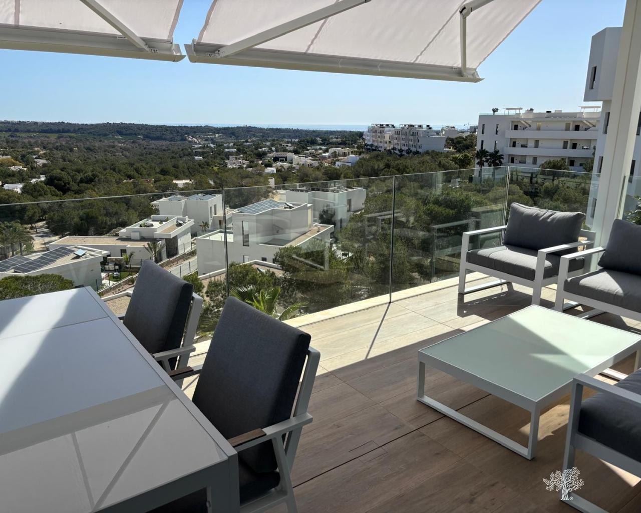 Moderno apartamento de reventa de 2 dormitorios y 2 baños en la comunidad Nispero Las Colinas Golf & Country Club. Disposición de planta abierta con amplio salón, cocina, terraza con vistas a la piscina comunitaria y zona verde circundante, así como vistas panorámicas al mar y bosque mediterráneo. Este apartamento se vende completamente amueblado con todos los electrodomésticos en la cocina, A/C frío/calor, suelo radiante en los baños y focos LED en toda la vivienda. También incluye un armario trastero privado y plaza de aparcamiento en el garaje subterráneo. La comunidad ofrece acceso a los jardines paisajísticos, la piscina, así como un gimnasio y aseos exteriores / duchas. A poca distancia de las instalaciones locales en la casa club del complejo, incluyendo un mini mercado, GYM / Spa, varios restaurantes y, por supuesto, el galardonado campo de golf de 18 hoyos.