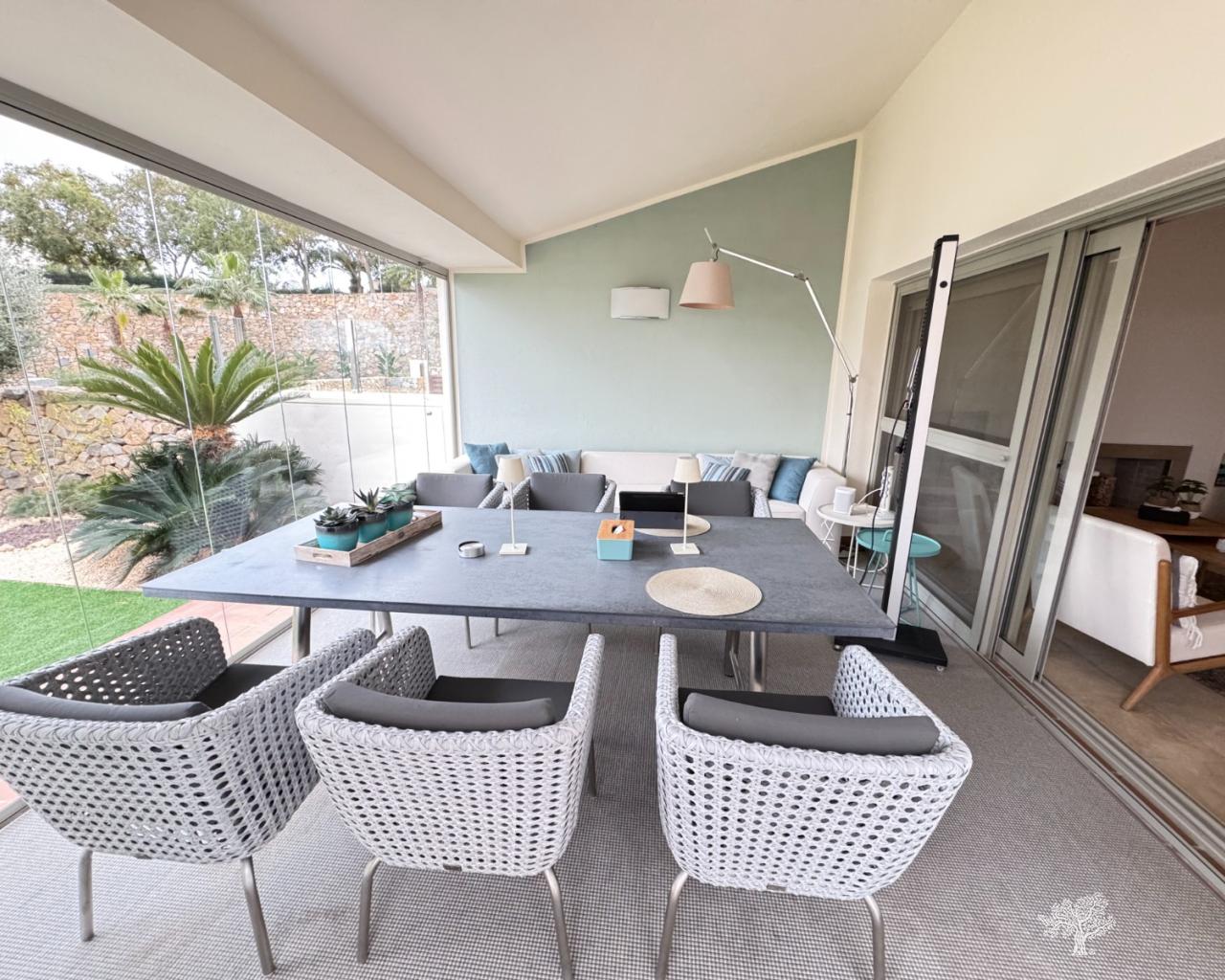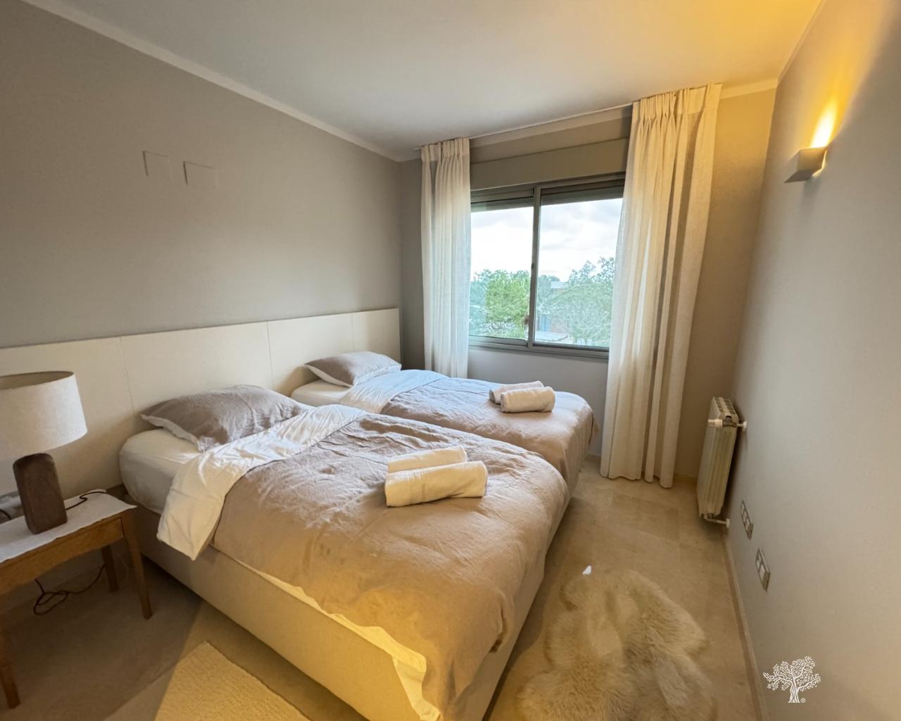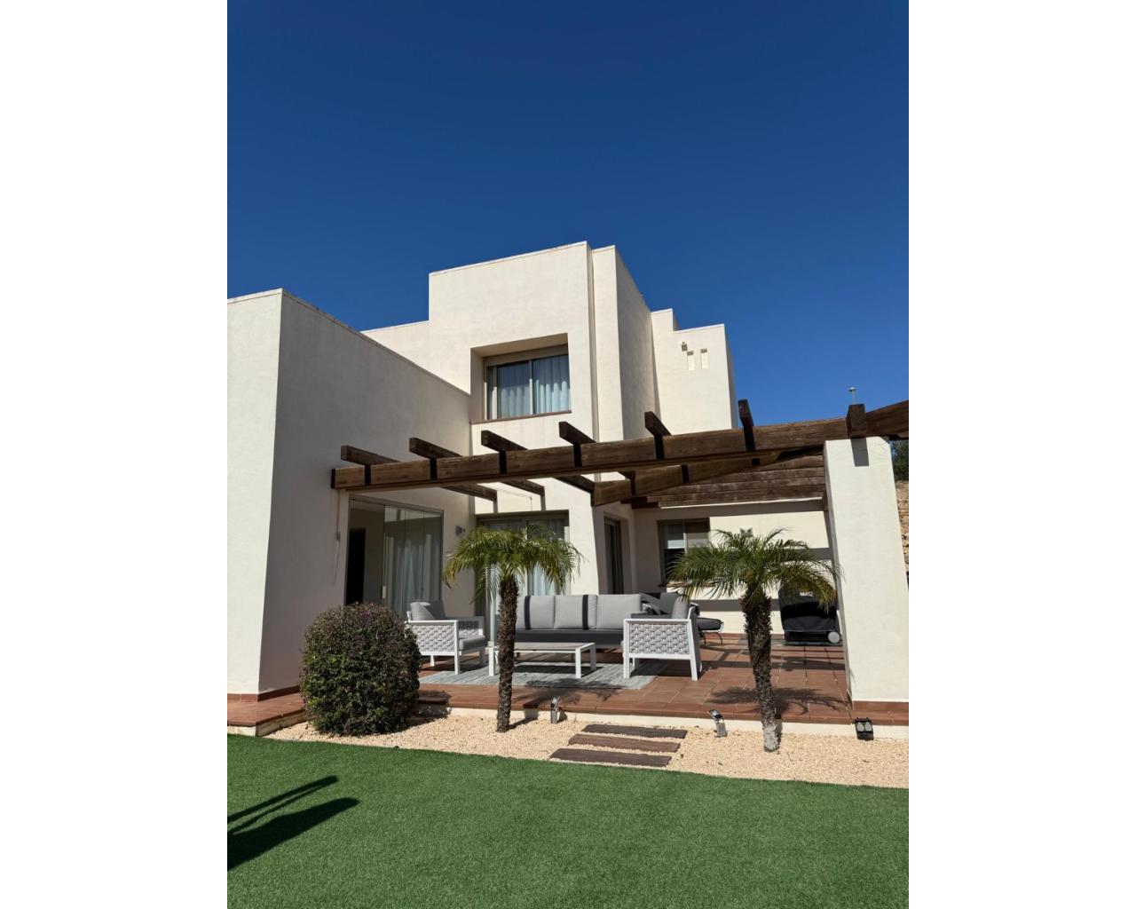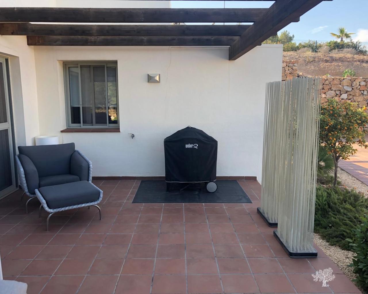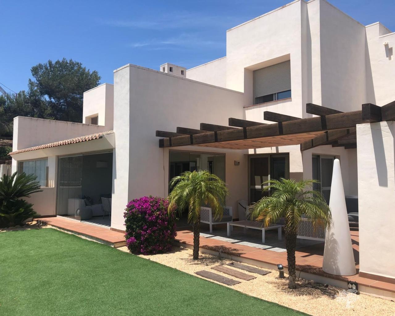Chalet adosado de estilo mediterráneo, tipo abejaruco, con 3 dormitorios y 3 baños en dos plantas. Con piscina comunitaria y aparcamiento privado. Urbanización cerrada para mayor seguridad. Terraza y jardín de invierno con orientación sur, completamente acristalados, para mayor espacio y ampliación del salón. Amueblado y decorado con materiales de alta calidad. Aire acondicionado frío-calor y calefacción central de gas con radiadores en salón y dormitorios. Cocina con todos los electrodomésticos y lavadero con lavadora/secadora. El chalet se encuentra en la urbanización Jacaranda, en pleno corazón del club de golf y campo Las Colinas. Se puede llegar fácilmente a pie a la casa club y a todos los servicios locales. La estancia mínima en este chalet de alquiler es de 4 días/noches.