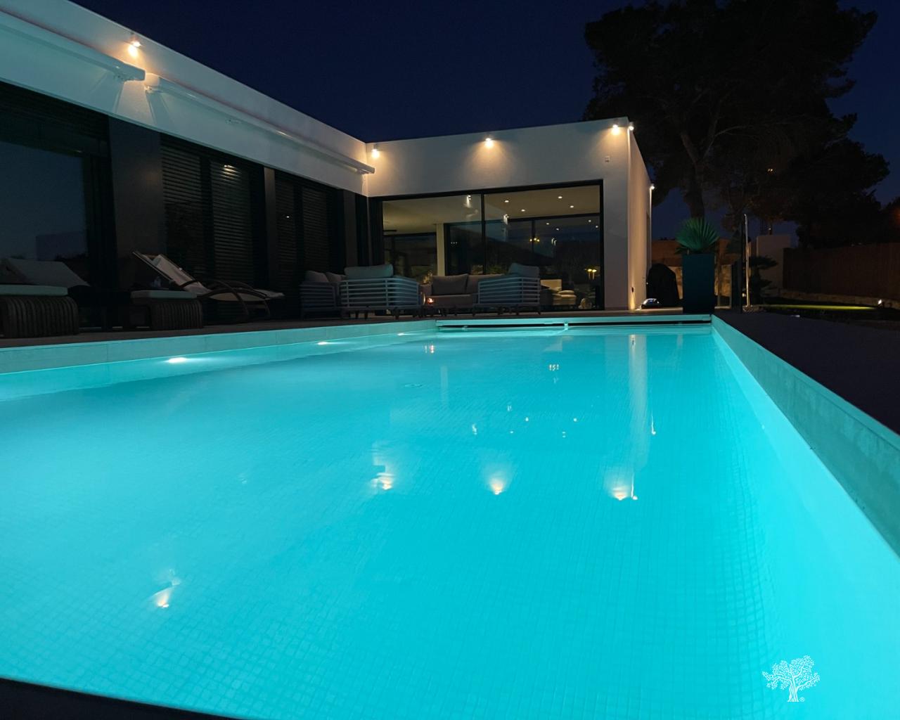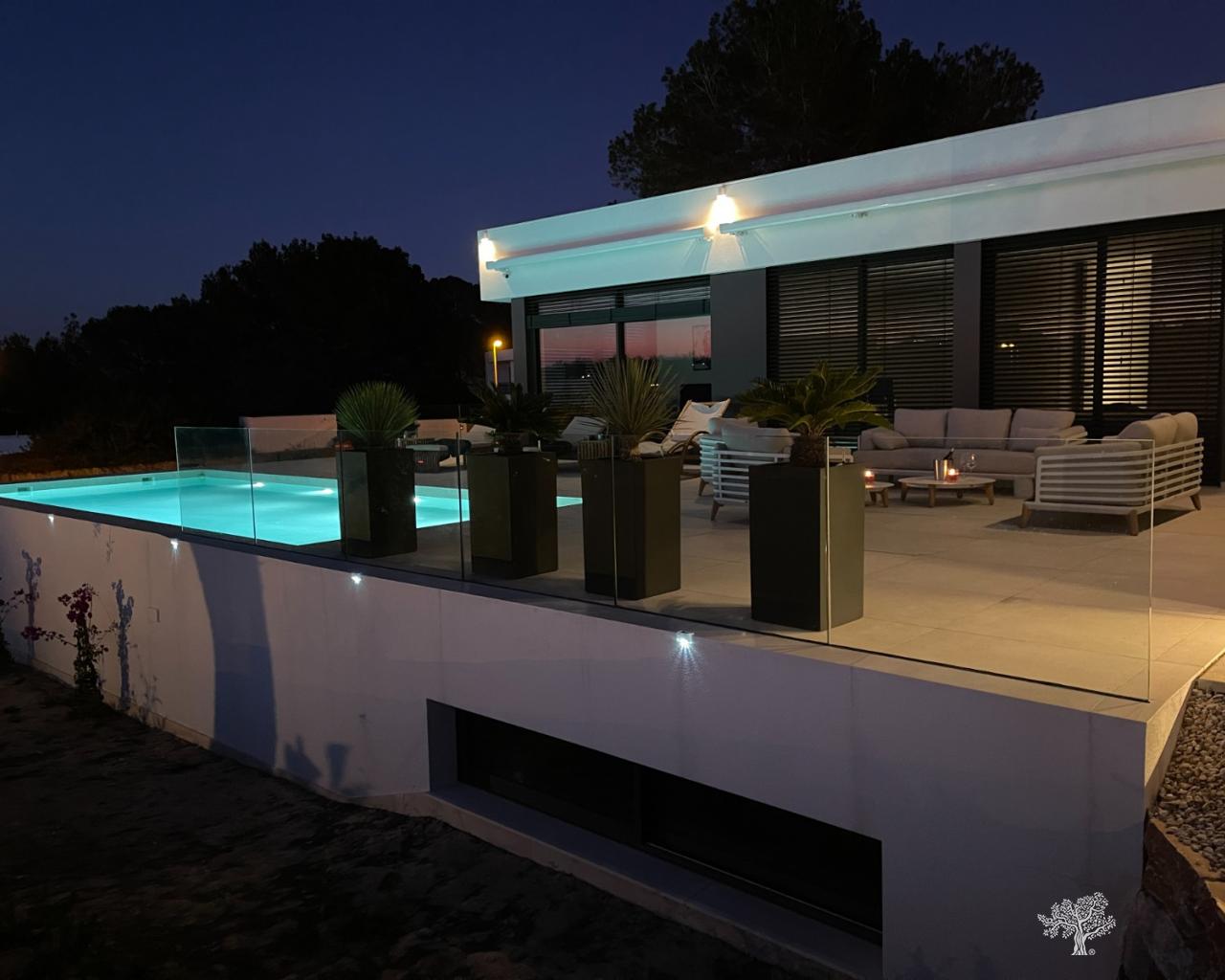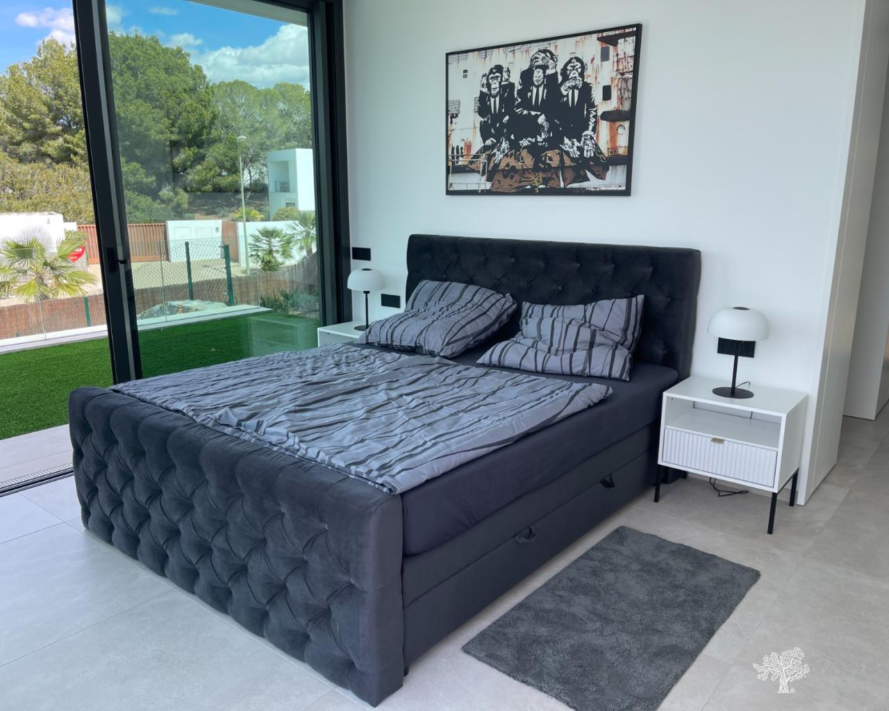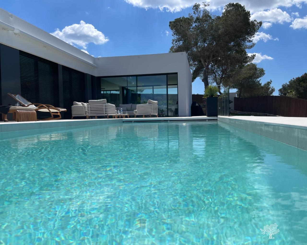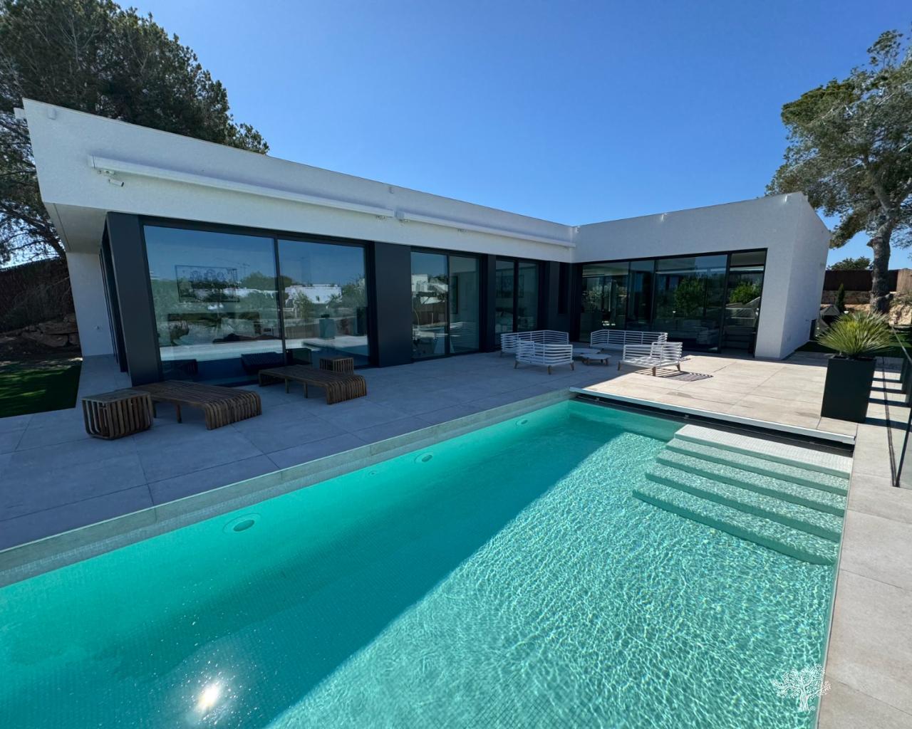 Villa Enebro de estilo moderno con 3 dormitorios, 2 baños, piscina privada, jardín paisajístico y garaje subterráneo. Situada en el corazón de Las Colinas Golf, a poca distancia de la casa club, el campo de golf y todos los servicios locales. Rodeada de bosque mediterráneo y del galardonado campo de golf de 18 hoyos. Con seguridad adicional en la isla central de este exclusivo resort, esta villa se encuentra en la mejor zona residencial. Amueblada y decorada con los más altos estándares, con electrodomésticos de alta gama en la cocina, piscina de lujo con cubierta y bomba de calor. Plaza de garaje para 1 o 2 coches y aparcamiento adicional para amigos o visitas justo fuera de la comunidad. Aire acondicionado frío-calor en todas las habitaciones con control por zonas, suelo radiante en la planta principal y luces LED en todas las habitaciones son solo algunas de sus características.