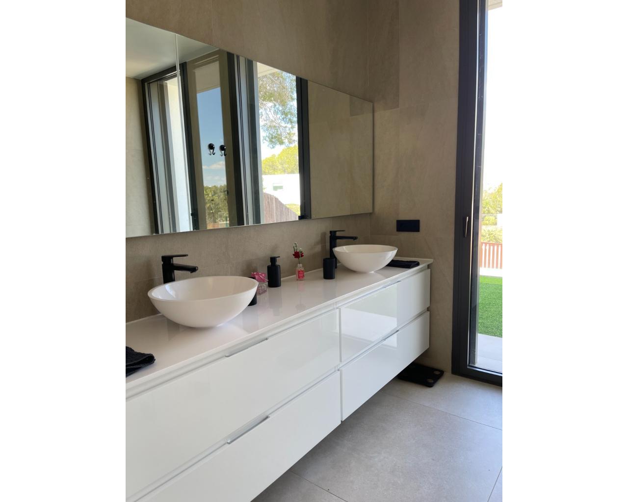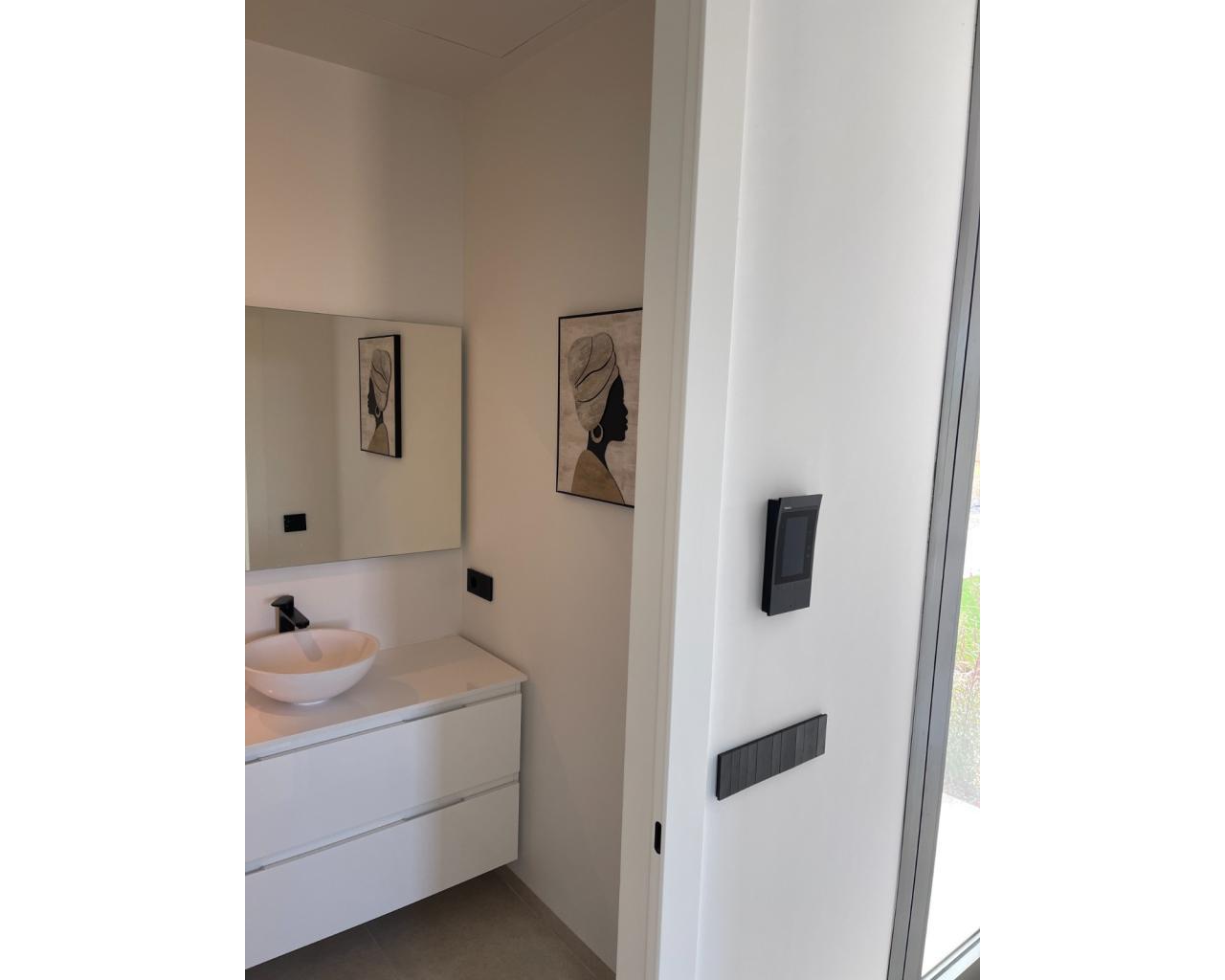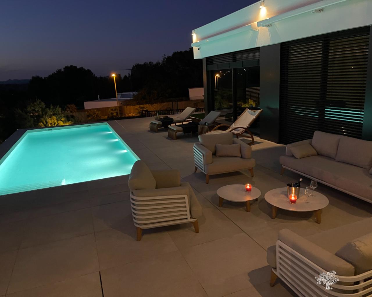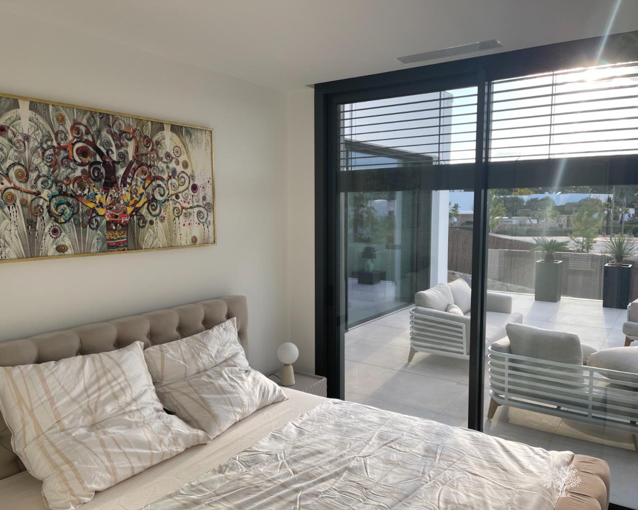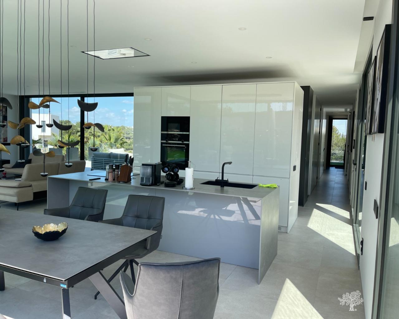 Villa Enebro de estilo moderno con 3 dormitorios, 2 baños, piscina privada, jardín paisajístico y garaje subterráneo. Situada en el corazón de Las Colinas Golf, a poca distancia de la casa club, el campo de golf y todos los servicios locales. Rodeada de bosque mediterráneo y del galardonado campo de golf de 18 hoyos. Con seguridad adicional en la isla central de este exclusivo resort, esta villa se encuentra en la mejor zona residencial. Amueblada y decorada con los más altos estándares, con electrodomésticos de alta gama en la cocina, piscina de lujo con cubierta y bomba de calor. Plaza de garaje para 1 o 2 coches y aparcamiento adicional para amigos o visitas justo fuera de la comunidad. Aire acondicionado frío-calor en todas las habitaciones con control por zonas, suelo radiante en la planta principal y luces LED en todas las habitaciones son solo algunas de sus características.