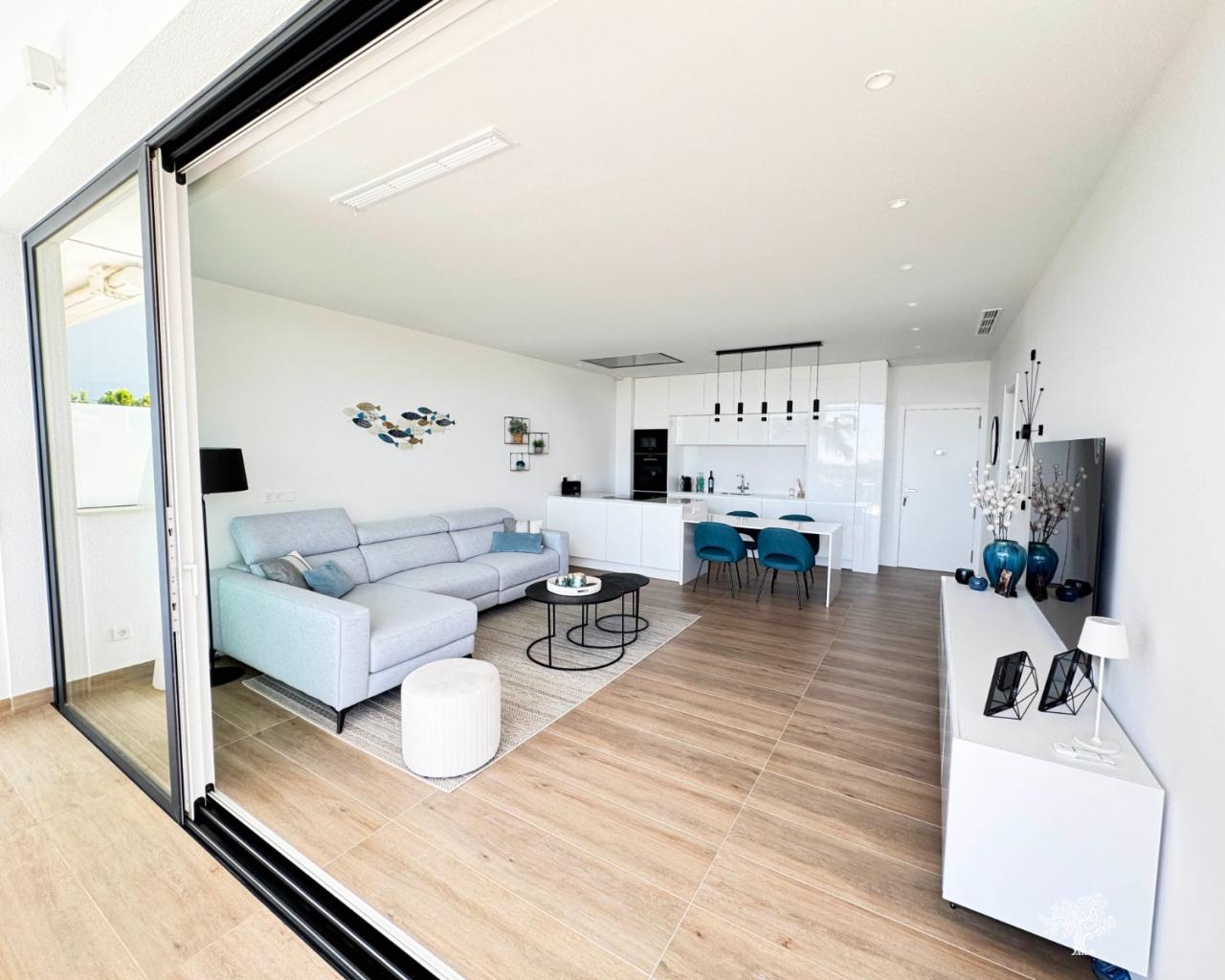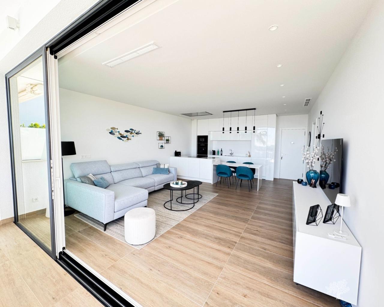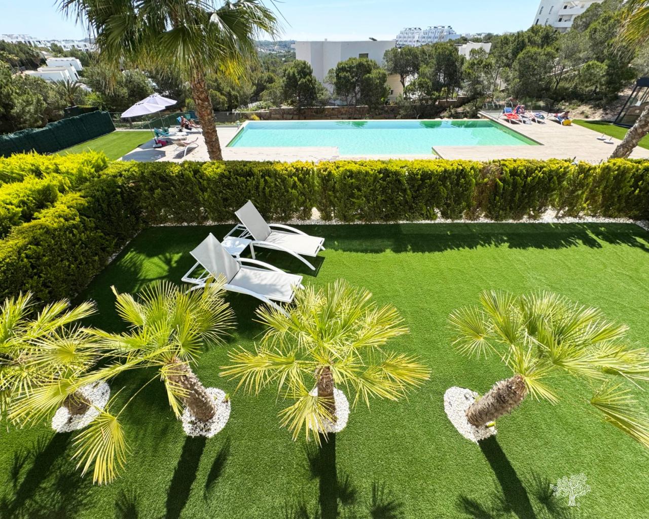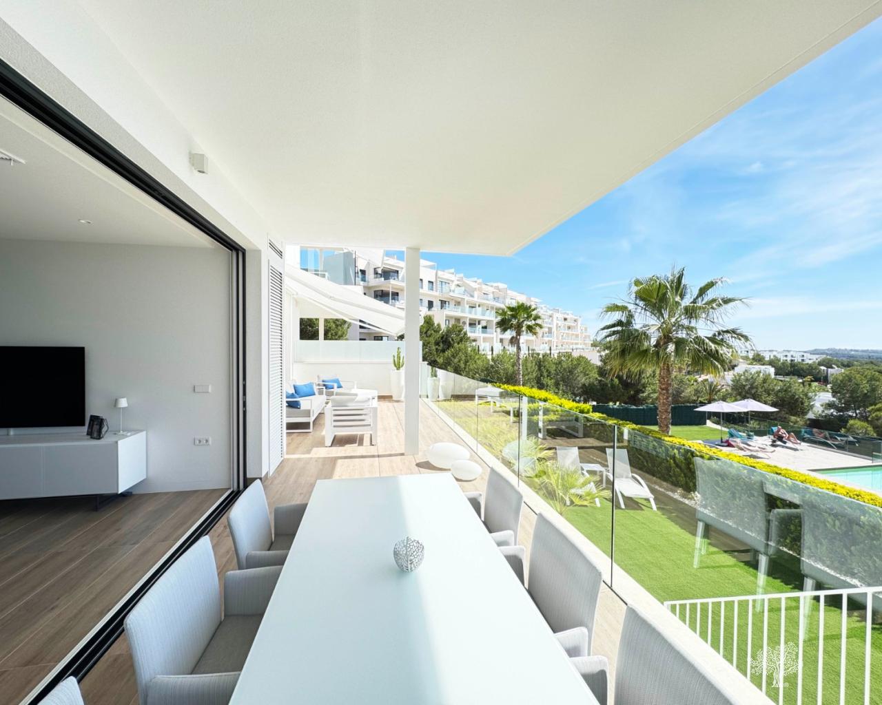 Precioso apartamento moderno situado en la urbanización Níspero, Las Colinas Golf, con 2 dormitorios y 2 baños. Este apartamento en planta baja ofrece una amplia terraza con acceso al jardín privado, bellamente diseñado y con acceso directo a la piscina comunitaria. La zona común también cuenta con gimnasio y aseos. La propiedad se entrega completamente amueblada e incluye una plaza de aparcamiento privado en el garaje y un trastero. Ubicado en uno de los puntos más altos del complejo, este apartamento ofrece vistas despejadas desde la terraza al bosque y a la piscina. El aire acondicionado con sistema Air Zone, la calefacción por suelo radiante eléctrico en los baños y los electrodomésticos Bosch en la cocina son solo algunas de las características que cabe mencionar.