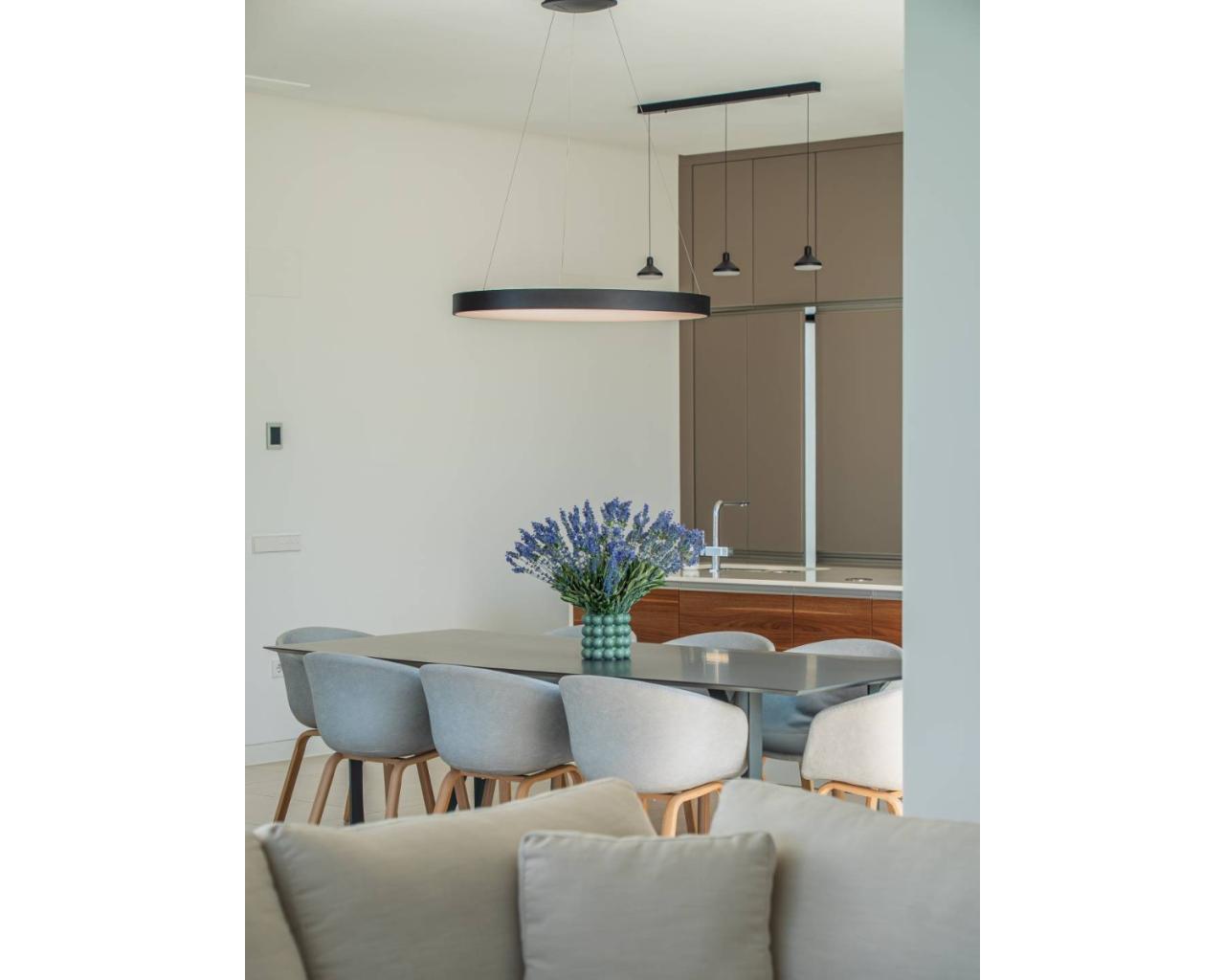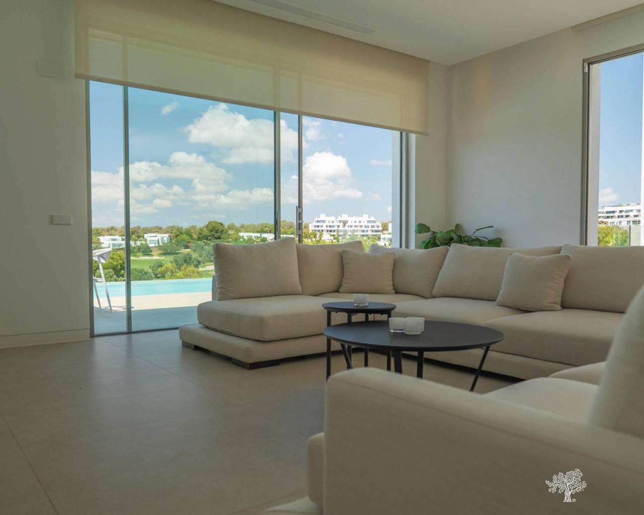 Preciosa villa independiente de estilo moderno situada en la urbanización Olivo, con piscina privada y amplio jardín. Esta villa consta de 4 dormitorios, 3 baños + aseo, piscina privada con cubierta automática y bomba de calor, y amplias terrazas con vistas despejadas al campo de golf y al mar. Se encuentra en una ubicación muy privada y tranquila dentro de la urbanización Olivo. La villa está construida en dos plantas con vistas despejadas desde la terraza principal. Se vende parcialmente amueblada e incluye numerosos extras como sistema de domótica, persianas eléctricas, aire acondicionado con Air Zone, suelo radiante en ambas plantas de la casa y cubierta y bomba de calor para la piscina privada.