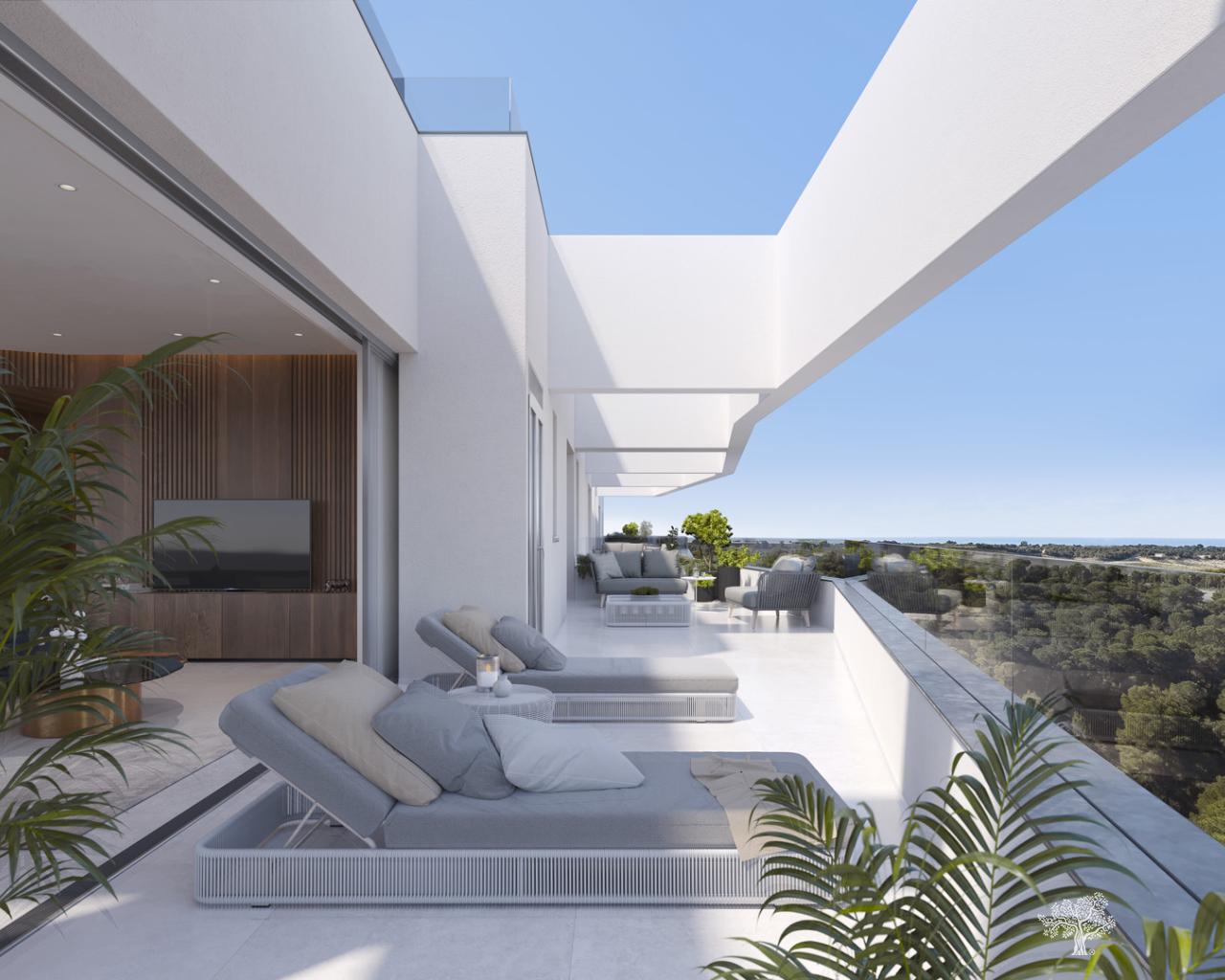 Modernos apartamentos en la comunidad Madroño, Las Colinas Golf & Country Club con 3 dormitorios, 2 baños, amplias terrazas e impresionantes vistas al golf y al mar. Acabados de alta calidad, con ventana panorámica en el salón, baldosas de cerámica de gran formato en todo el apartamento, elegante diseño en los baños totalmente equipados, dormitorios con armarios empotrados y todos los electrodomésticos incluidos en la cocina americana. A/A por conductos en todo el apartamento, suelo radiante eléctrico en los baños y luz LED para el interior/exterior. Hermosos jardines comunitarios y zona de piscina, así como aparcamiento subterráneo con garaje privado y trastero para cada apartamento.