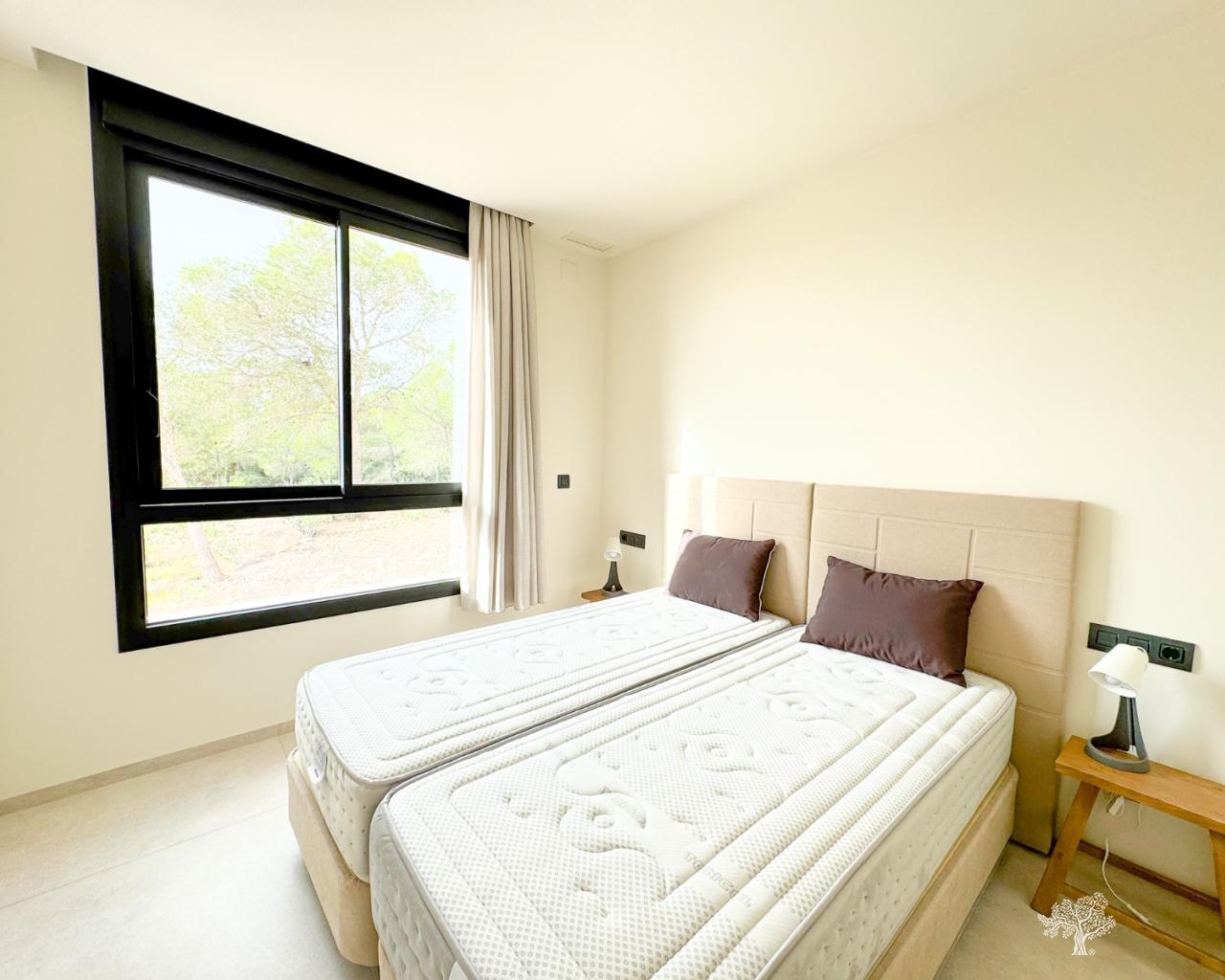Apartamento moderno "Kumquat" de 3 dormitorios, amplia terraza, cerca del campo de golf en Las Colinas Golf. Acabados de calidad, garaje y trastero con cada unidad. Rodeado de reserva natural y bosque mediterráneo con orientación sur, suroeste. Este apartamento se vende completamente amueblado, incluidos todos los electrodomésticos en la cocina, A/C frío/calor y calefacción por suelo radiante eléctrico en ambos baños. Acceso por ascensor a la propiedad, así como a la piscina y al garaje/trastero. Vistas abiertas al bosque y al mar, incluida La Manga.