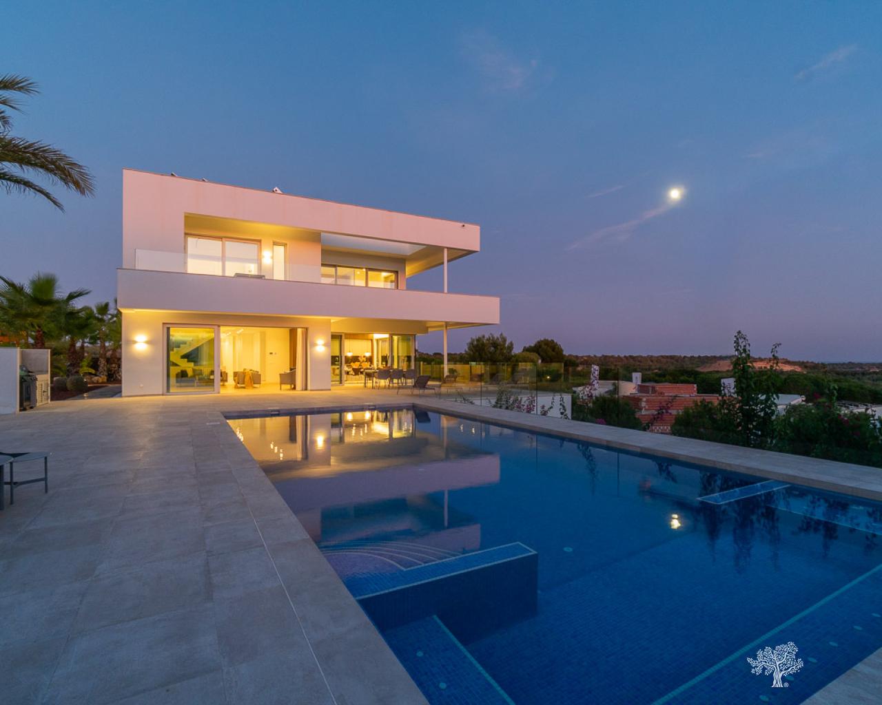 Villa moderne indépendante avec 5 chambres, 5 salles de bain, piscine privée et parking, située au cœur de Las Colinas, à proximité du club-house et de tous les services, du golf et des restaurants. Finitions luxueuses associées à un design moderne. Construite sur 3 niveaux avec de nombreuses terrasses et une vue dégagée. Garage privé pour deux voitures et sous-sol pouvant servir de cinéma, bureau ou autre. Matériaux de Porcelanosa et d'autres marques renommées. Équipements haut de gamme dans la cuisine et les salles de bains. Climatisation, chauffage au sol dans toute la villa et système de panneaux solaires ne sont que quelques-unes des caractéristiques de cette propriété.