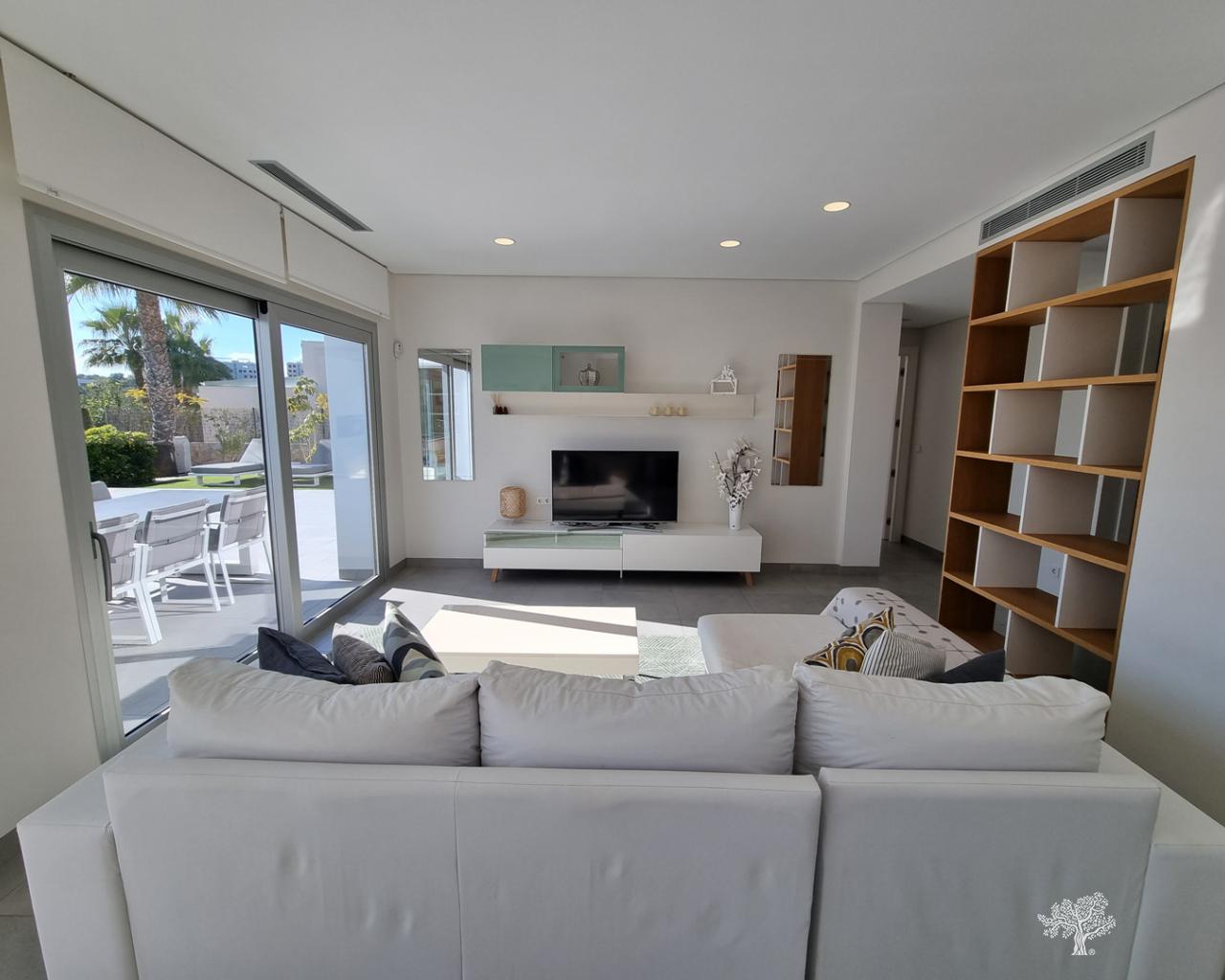 Villa moderne dans la communauté Tipuana Las Colinas Golf & Country Club avec piscine à débordement et jardin paysager. Avec 2 chambres 1 salle de bain, terrasses spacieuses dont toit-terrasse avec vue panoramique sur la mer. L'orientation sud offre du soleil toute la journée et un emplacement calme dans cette communauté privée qui se compose de seulement 12 villas au total. Cuisine ouverte, comprenant tous les appareils électriques, climatisation avec zone d'air et système domotique pour contrôler les volets électriques et les lumières. Chauffage au sol dans toute la villa, spots LED, couverture de piscine manuelle et pompe à chaleur pour la piscine.
