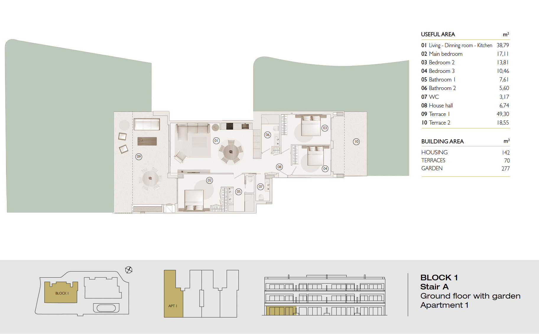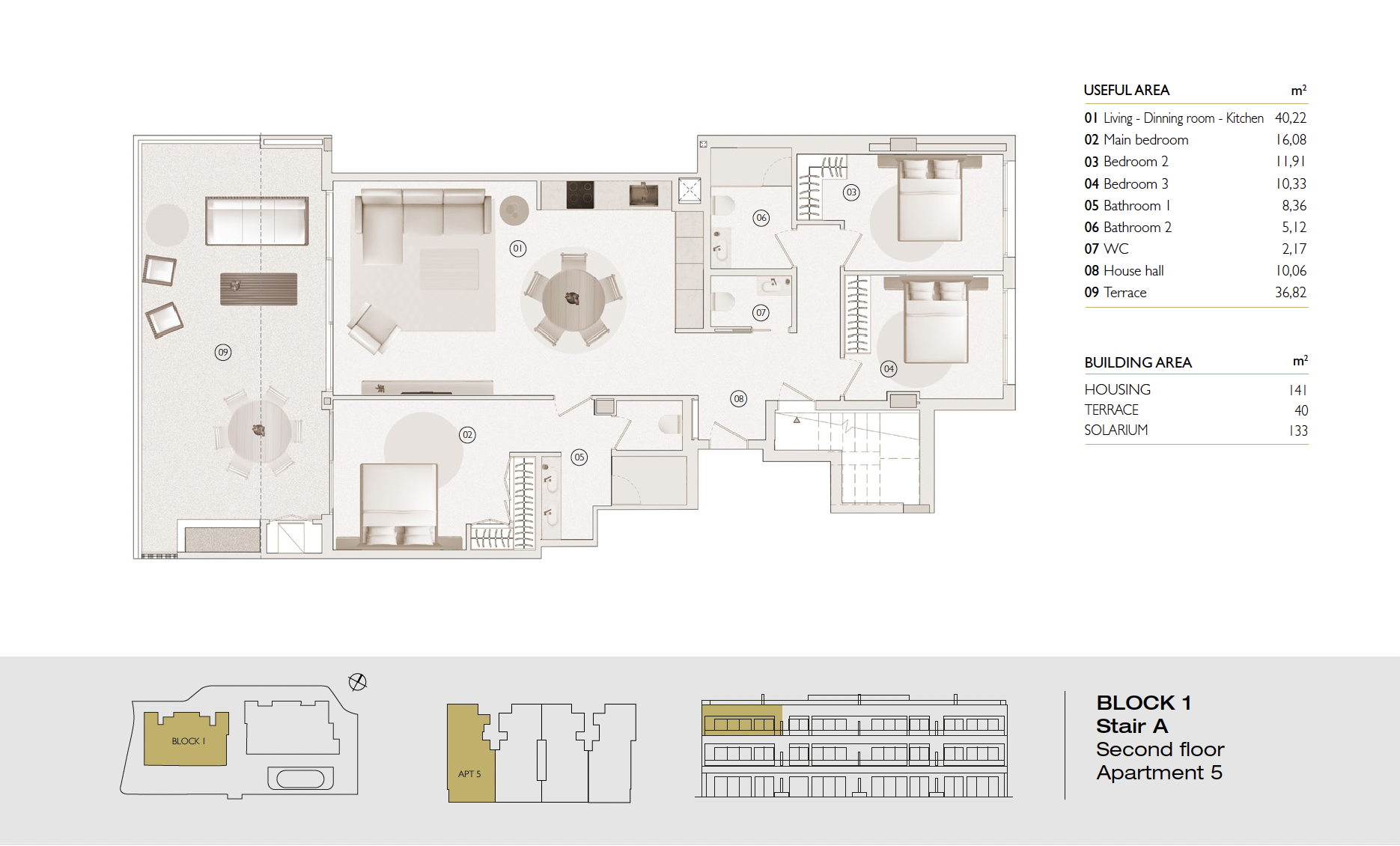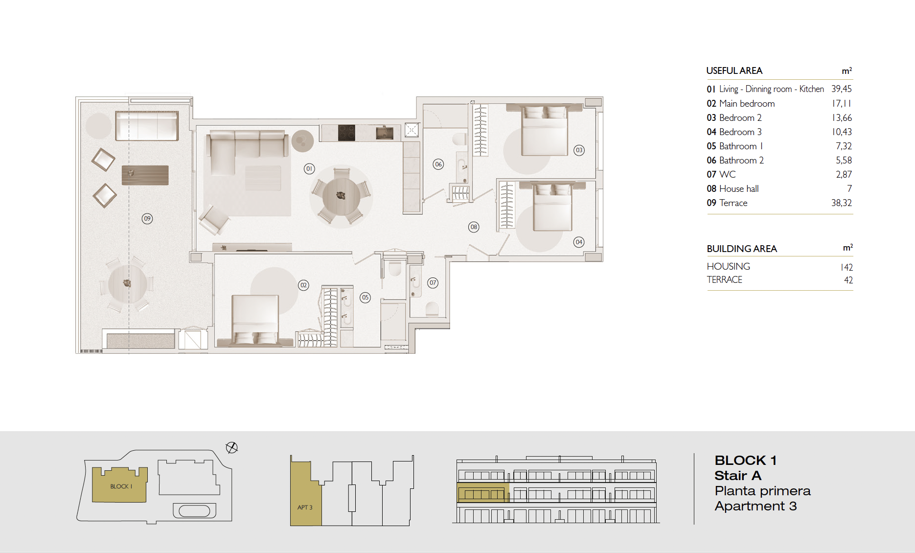 Appartements Citrus au cœur du Las Colinas Golf & Country Club, avec options de 2 et 3 chambres. Places de parking souterraines et placards de rangement, jardins paysagers et piscine commune avec terrasses exposées sud et vue sur le golf et la mer depuis le premier étage et les appartements en attique. Construction de haut standing avec climatisation (air zone), chauffage au sol dans les salles de bains, volets électriques dans les chambres, éclairage LED indirect dans le salon et les chambres, électroménager Siemens/Bosch dans la cuisine. Salles de bains équipées de lavabos, douches et miroirs. Chambres avec placards intégrés et prises pour internet (fibre optique), électricité et télévision. Entouré par la forêt méditerranéenne et donnant sur le parcours de golf primé.