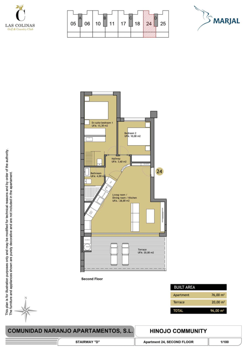 Un appartement moderne de 2 chambres à coucher et 2 salles de bains au deuxième étage, exposé au sud, dans la communauté Hinojo de Las Colinas Golf Resort (Alicante). La communauté Hinojo est située sur l'un des points les plus élevés de Las Colinas Golf Resort, offrant des vues sur la forêt méditerranéenne et les couchers de soleil les plus époustouflants. Les espaces communs de la communauté Hinojo comprennent des jardins magnifiquement aménagés, une grande piscine commune et des espaces de détente entourés de palmiers et de végétation indigène.