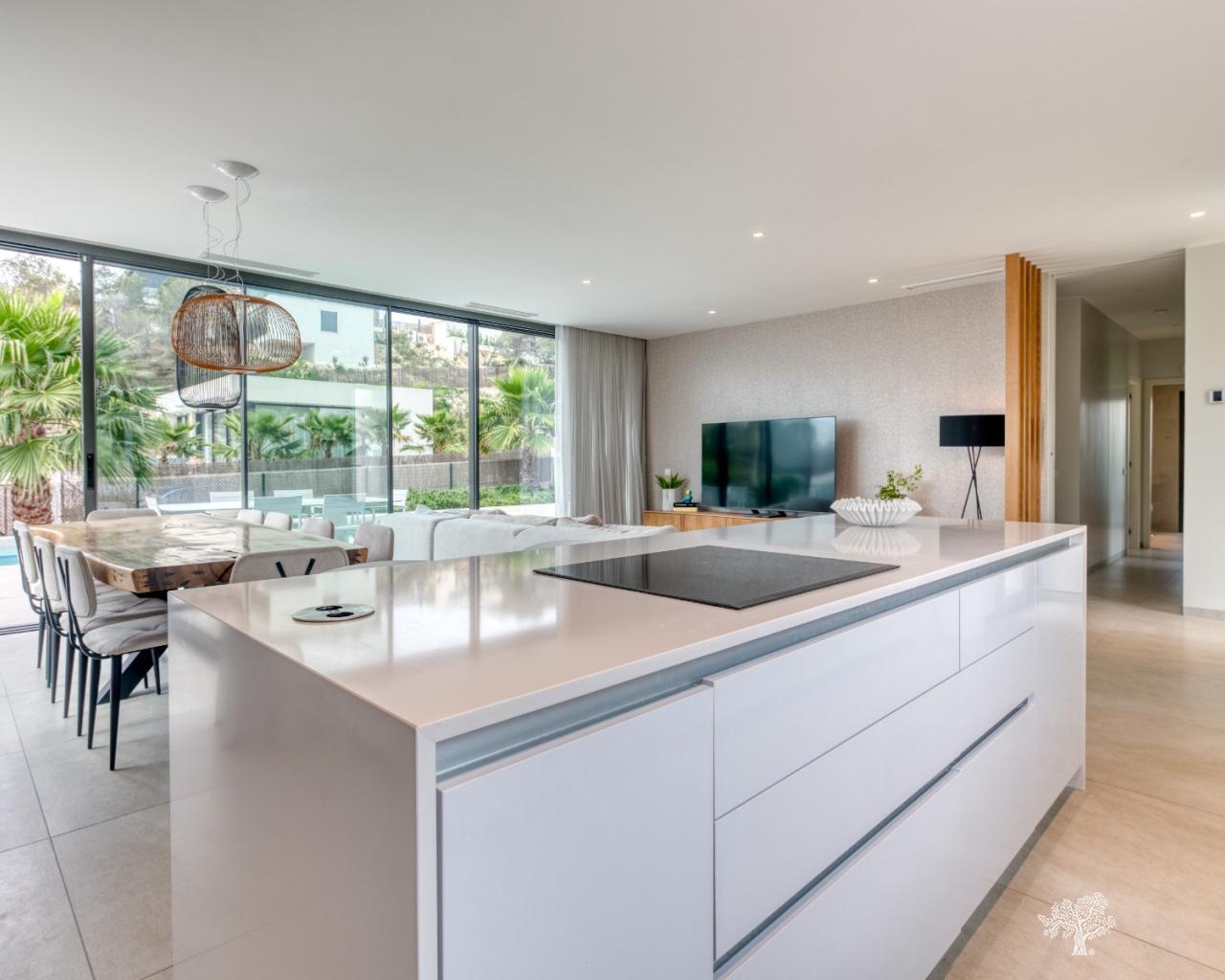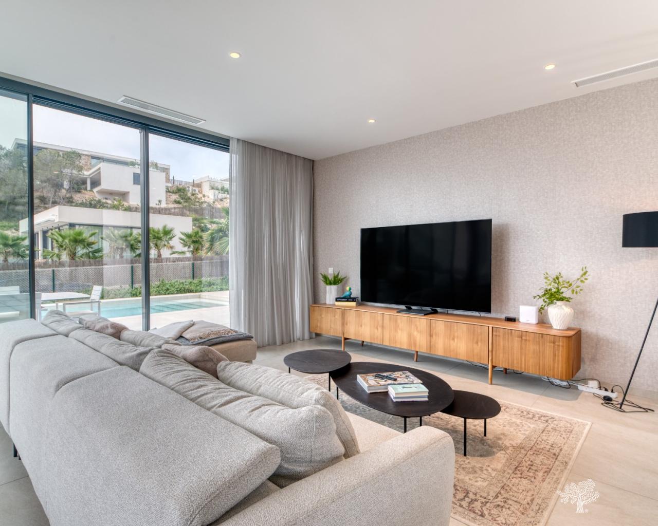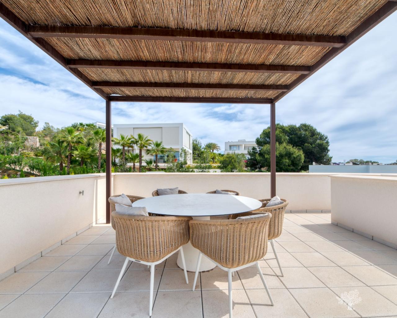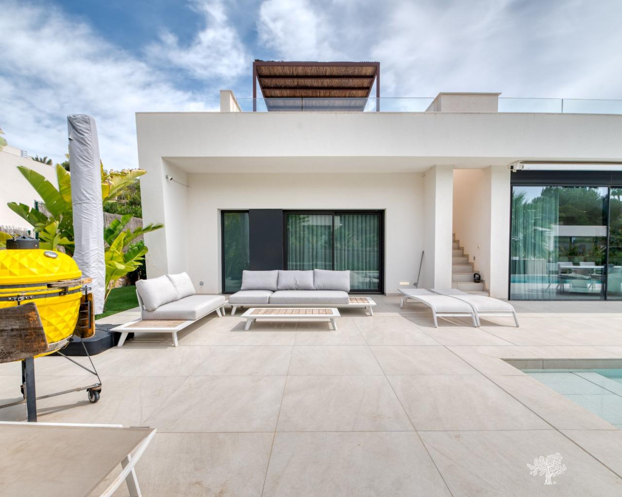 Villa individuelle moderne de type Mimosin située au cœur du Las Colinas Golf & Country Club. Elle comprend 4 chambres, 3 salles de bains, une piscine privée, un sous-sol et une terrasse sur le toit. Construite sur un terrain privé de deux niveaux avec de spacieuses terrasses et un jardin paysager, elle comprend également un sous-sol de 90 m² aménagé en chambre/salle de bains supplémentaire et en salle de jeux. Elle est équipée de la climatisation (chaud/froid), de tous les luminaires intérieurs et extérieurs, d'une piscine design, de tous les appareils électroménagers dans la cuisine et de salles de bains entièrement équipées. Finitions haut de gamme.