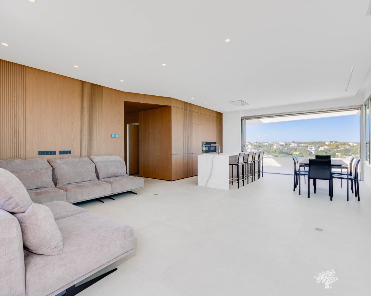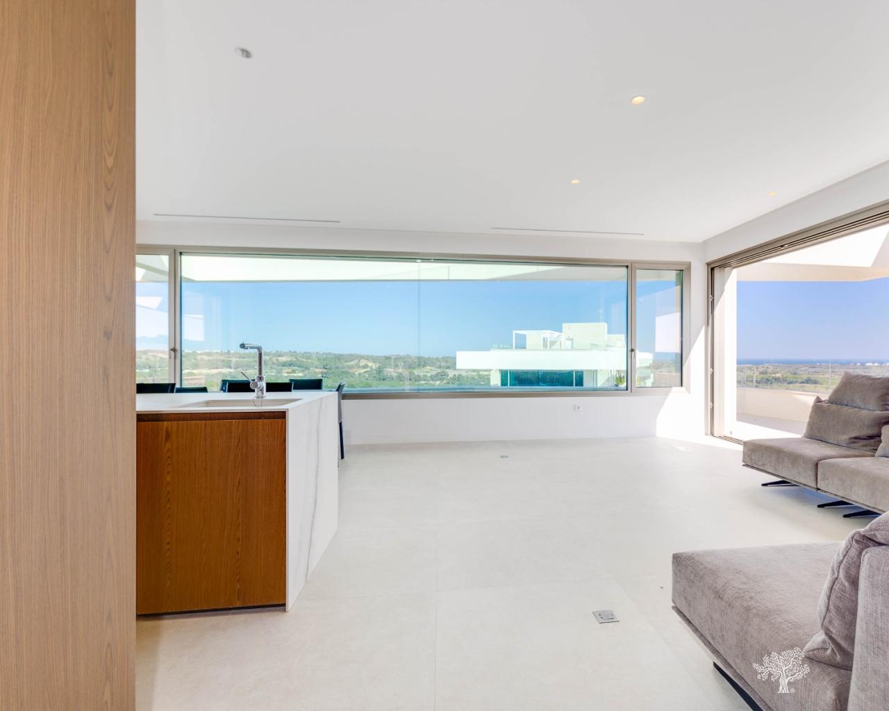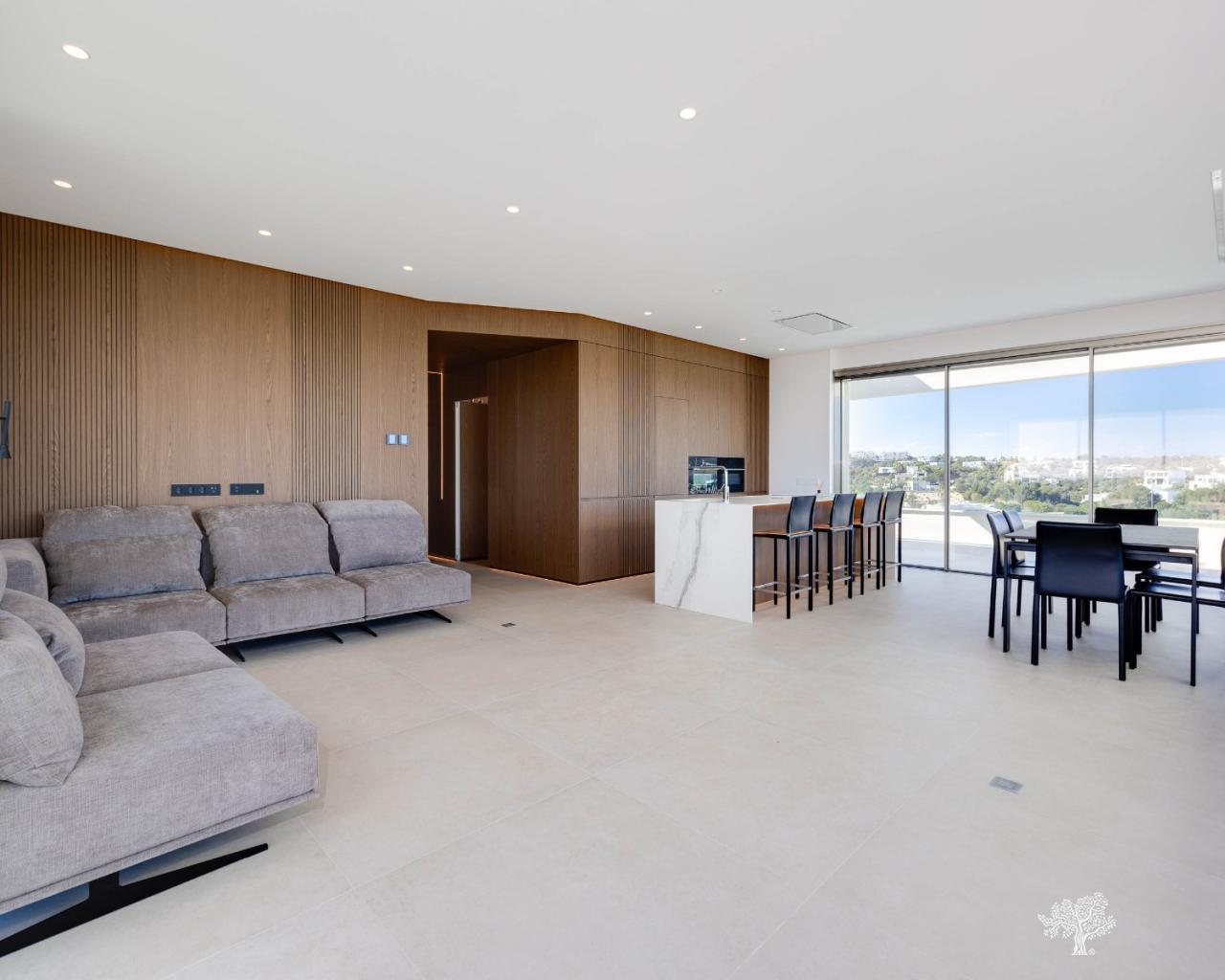 Penthouse de luxe avec 3 chambres, terrasse sur le toit, 2 places de parking en garage, rangements et une vue imprenable sur le golf et la mer à Las Colinas Golf, résidence Madroño II. Appartement d'angle avec 2 terrasses principales donnant sur la mer et le golf, offrant des prestations haut de gamme : climatisation réversible, chauffage au sol dans les salles de bains, volets roulants électriques dans les chambres, électroménager haut de gamme dans la cuisine et accès à une magnifique piscine et une salle de sport communes. Ce penthouse d'angle comprend 2 places de parking en garage souterrain ainsi qu'un espace de rangement. Finitions luxueuses et éléments en bois dans le salon/cuisine et les chambres, associés à un éclairage LED indirect, créent une ambiance apaisante.