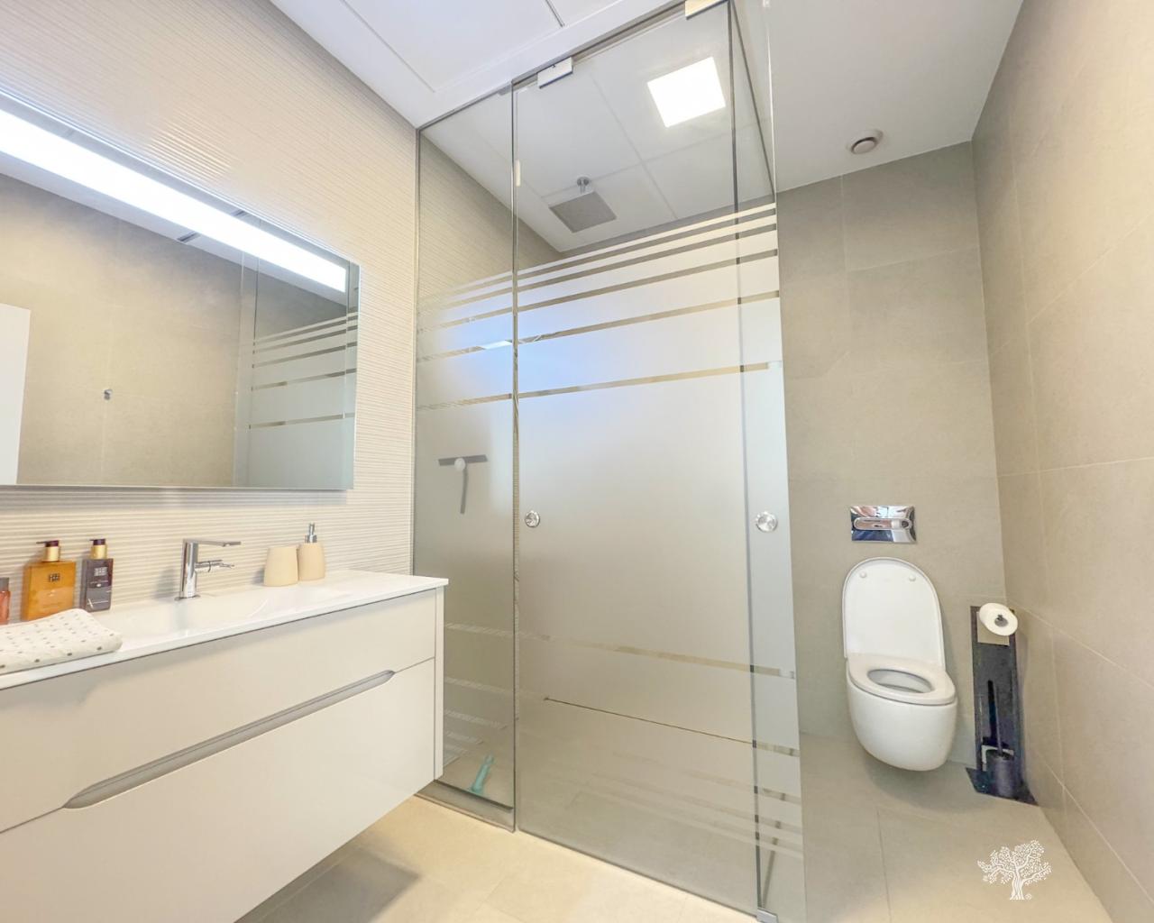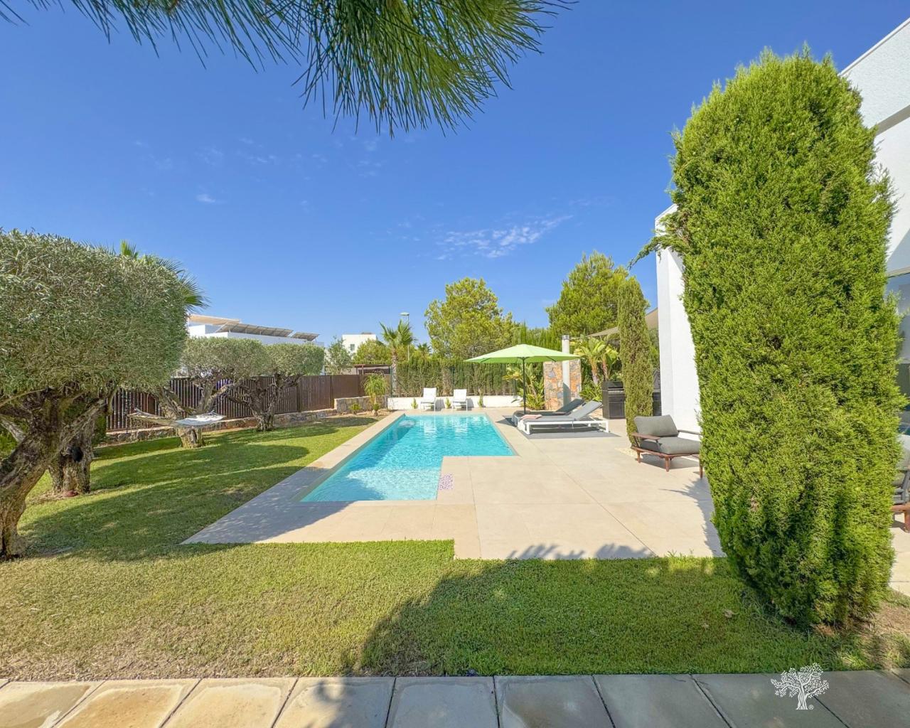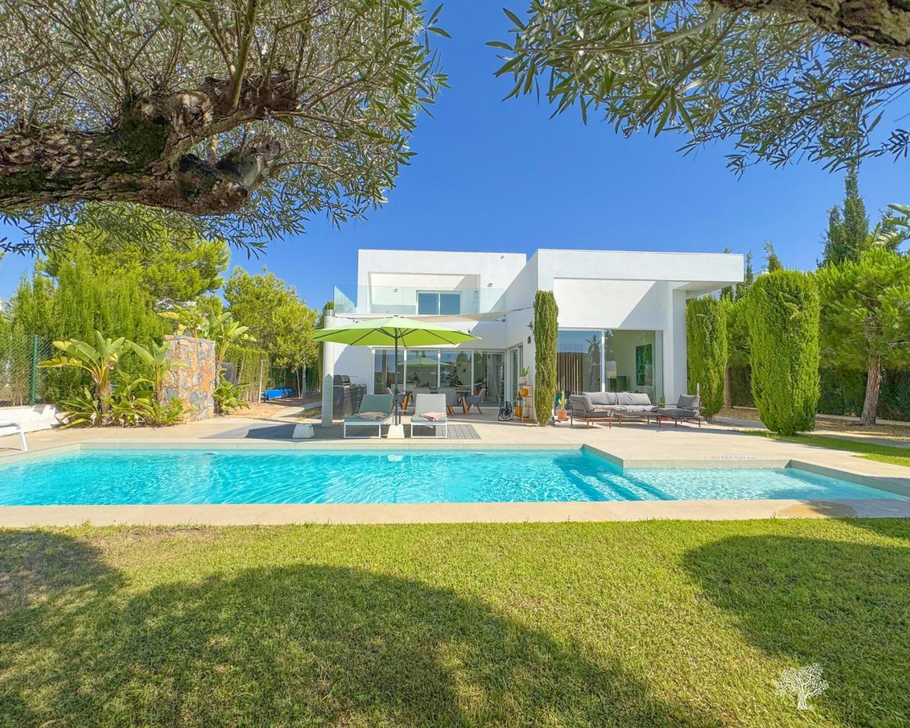 Villa Almendro à Las Colinas Golf avec 3 chambres, 3 salles de bains, un magnifique jardin paysager, une piscine privée et de spacieuses terrasses. Entièrement meublée, elle dispose d'un parking privé avec pergola/abri voiture. Construite sur un terrain de 770 m² et divisée en deux niveaux, cette villa de style moderne offre de généreux espaces intérieurs et extérieurs. Située au cœur de Las Colinas et entourée par le parcours de golf primé, elle bénéficie d'un emplacement calme avec vue dégagée et d'une intimité totale. Chauffage au sol dans toutes les pièces, climatisation (chaud/froid), éclairage LED, système domotique et filtre à eau dans la cuisine ne sont que quelques-unes des caractéristiques de cette villa.