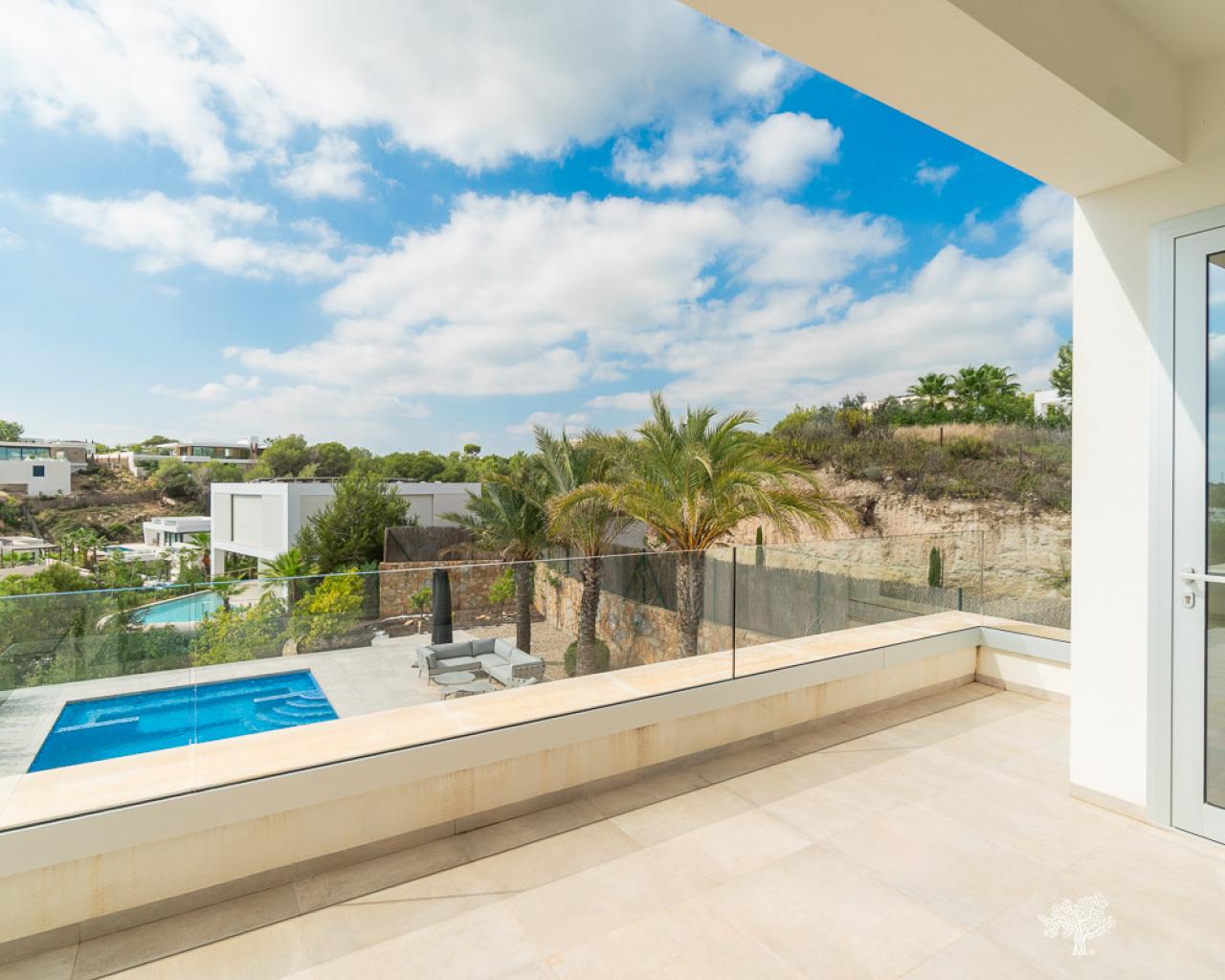 Moderne vrijstaande villa met 5 slaapkamers, 5 badkamers, privézwembad en parkeerplaats, gelegen in het hart van Las Colinas, vlakbij het clubhuis en alle voorzieningen, golfbanen en restaurants. Luxe afwerking gecombineerd met een modern design. Gebouwd over 3 verdiepingen met talrijke terrassen en vrij uitzicht. Privé garage voor twee auto's en kelder voor bioscoop, kantoor en ander gebruik. Materialen van Porcelanosa en andere bekende merken. Hoogwaardige apparatuur in de keuken en badkamers. Airconditioning, vloerverwarming in de hele villa en zonnepanelen zijn slechts enkele van de kenmerken.