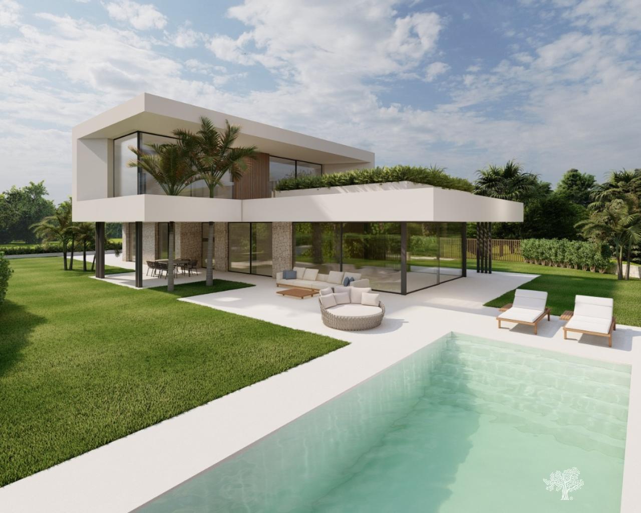 De villa bestaat uit een reeks ruimtelijke indelingen met 4 slaapkamers, 5 badkamers en een garage, waar verschillende onafhankelijke sferen zijn gecreëerd die een intieme en gezellige ruimte genereren. Op de hoofdverdieping smelten de keuken, eetkamer en woonkamer samen tot een schone, lichte en open omgeving. De slaapkamer en badkamer op deze verdieping smelten samen in een natuurlijke en unieke omgeving met uitzicht naar buiten. Naast deze kamers is er een bioscoop voor plezier en ontspanning. Boven vind je de hoofdslaapkamer met een groot terras dat een open en bevoorrecht uitzicht biedt.