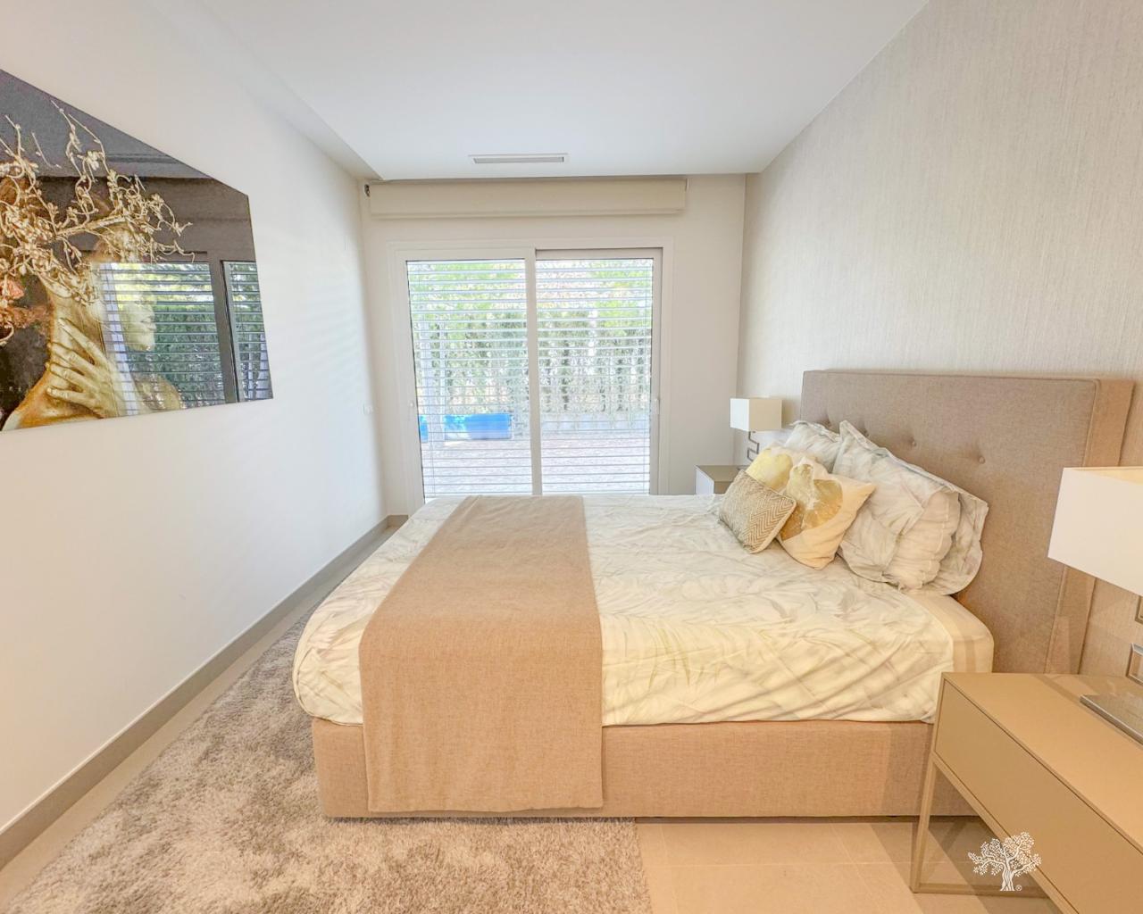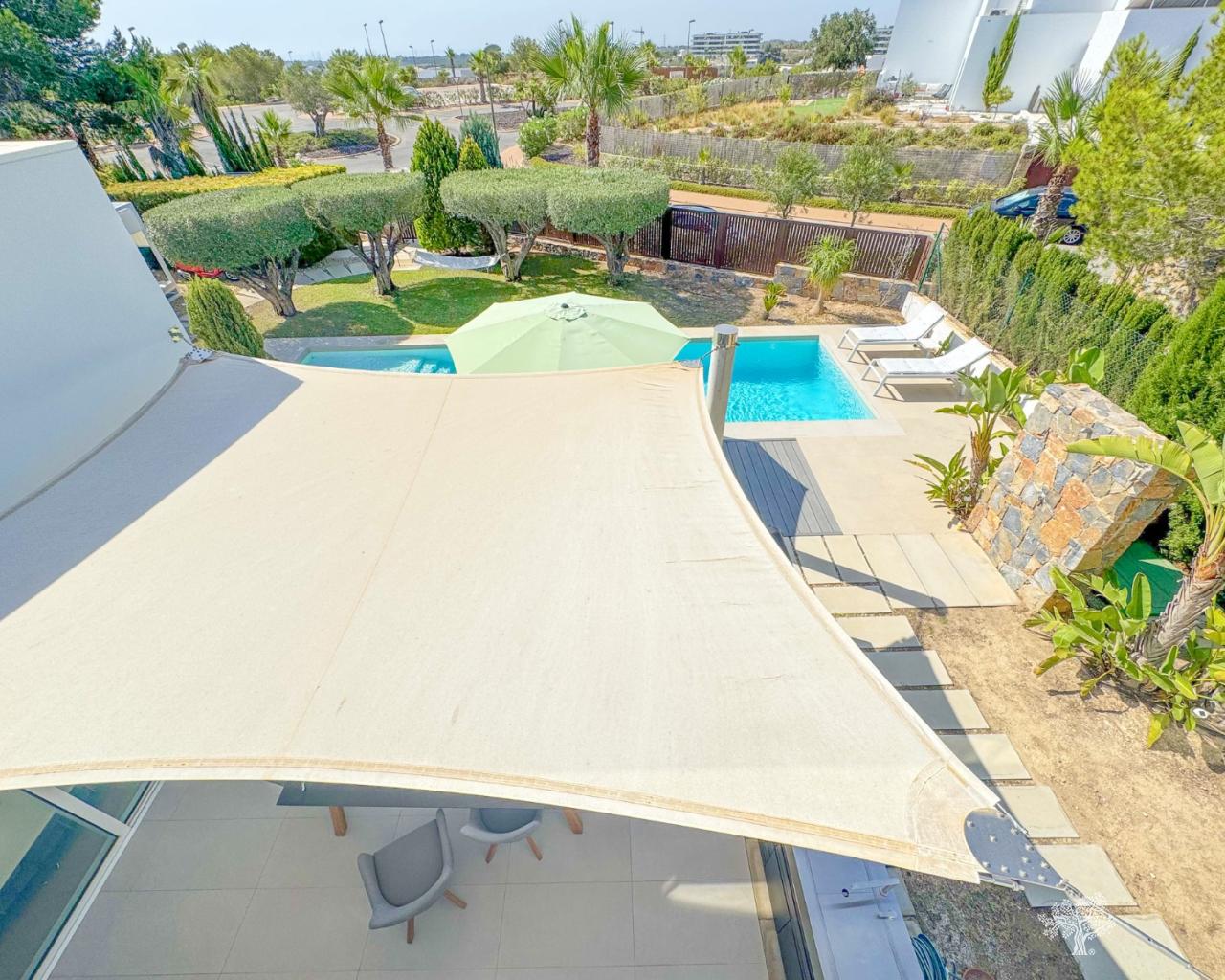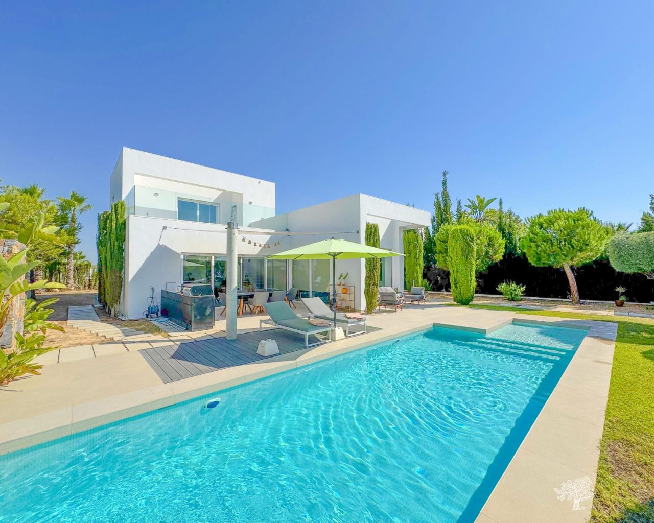 Villa Almendro in Las Colinas Golf met 3 slaapkamers, 3 badkamers, een prachtig aangelegde tuin, een privézwembad en ruime terrassen. Volledig gemeubileerd en met een eigen parkeerplaats met pergola/carport. Deze moderne villa is gebouwd op een perceel van 770 m² en verdeeld over twee verdiepingen. De villa biedt veel binnen- en buitenruimte. Gelegen in het hart van Las Colinas en omgeven door de bekroonde golfbaan. Rustige locatie met open uitzicht en volledige privacy. Vloerverwarming in alle kamers, airconditioning (warm/koud), ledverlichting, een smart home-systeem en een waterfilter in de keuken zijn slechts enkele van de bijzondere kenmerken van deze villa.