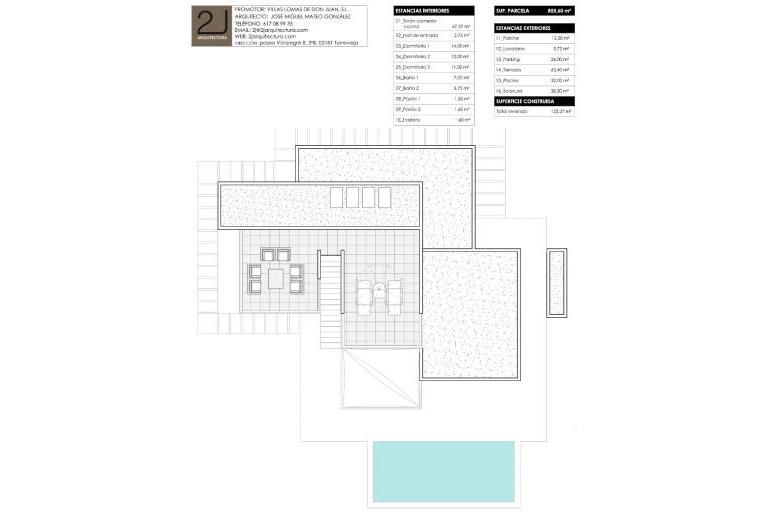 Modern villa in the Tipuana Las Colinas Golf & Country Club community with infinity pool and landscaped garden. With 2 bedrooms 1 bathrooms, spacious terraces including roof terrace with panoramic sea views. South facing offers sun all day and quiet location in this private community which consists of just 12 villas in total. Open kitchen, including all electrical appliances, air conditioning with air zone and domotic system to control the electric shutters and lights. Underfloor heating throughout the villa, LED spotlights, manual pool cover and heating pump for the pool.