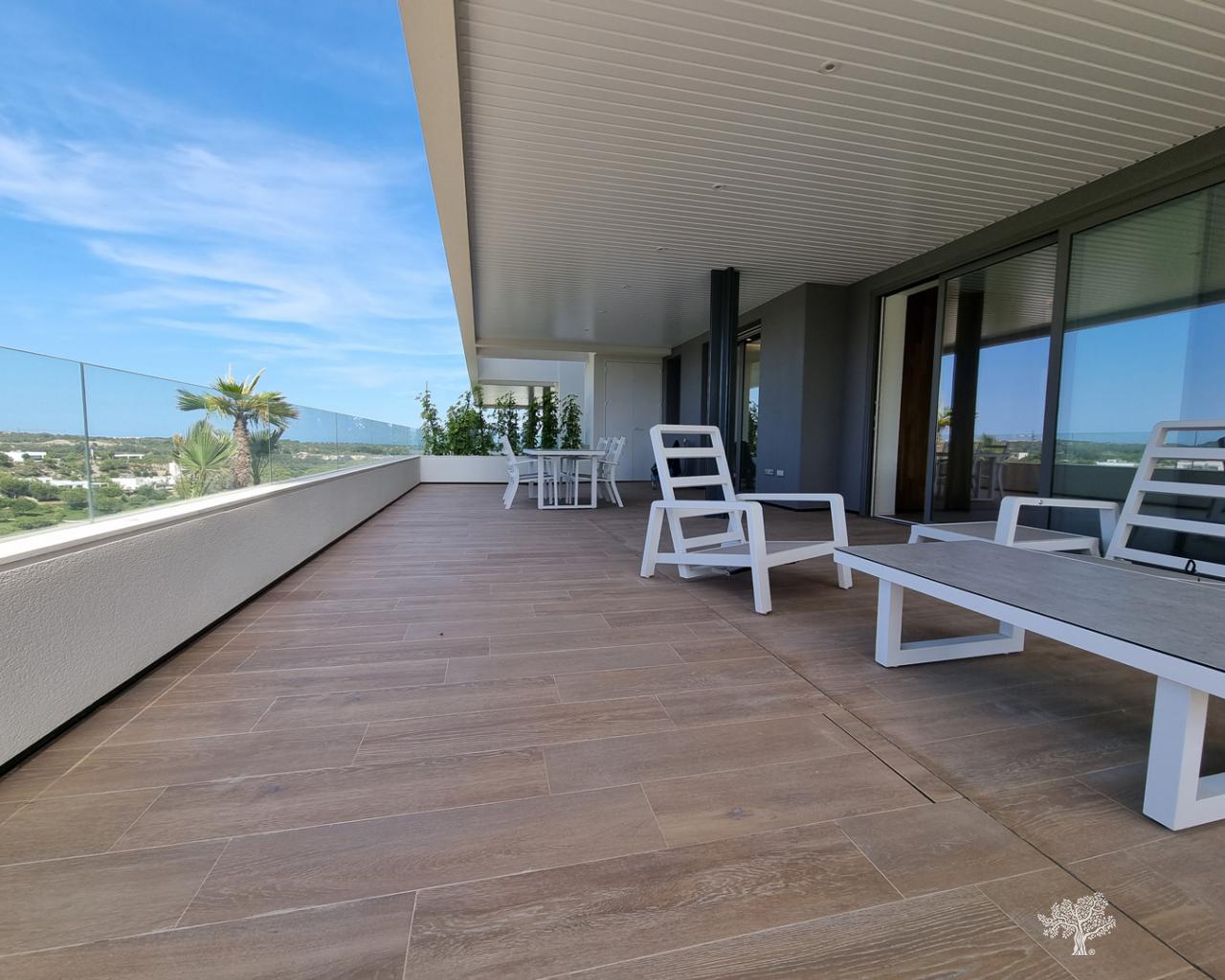 Modern ground floor apartment in the exclusive Madroño community in Las Colinas Golf & Country Club. With 3 bedrooms, 2 bathrooms, spacious terraces and stunning golf views. Private landscaped garden, parking space in the underground garage as well as a storage cupboard. Full smart home (domotic) system to control blinds, shutters, lights and air con in the property. Floor heating in bathrooms, fully equipped kitchen with all appliances. Open plan layout with build in wardrobes and high quality finishing. The community also includes two exterior swimming pools, spa/gym and a covered, heated swimming pool.