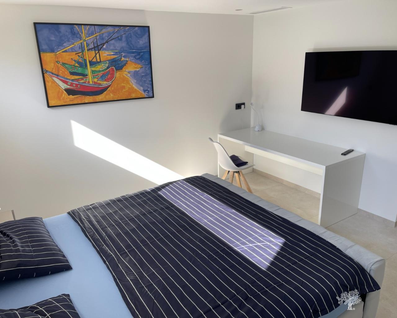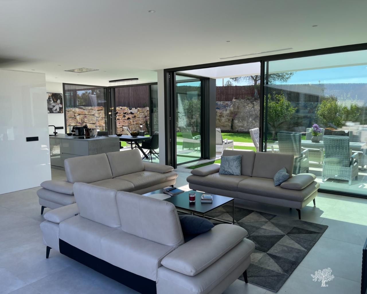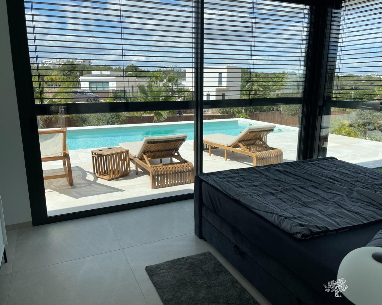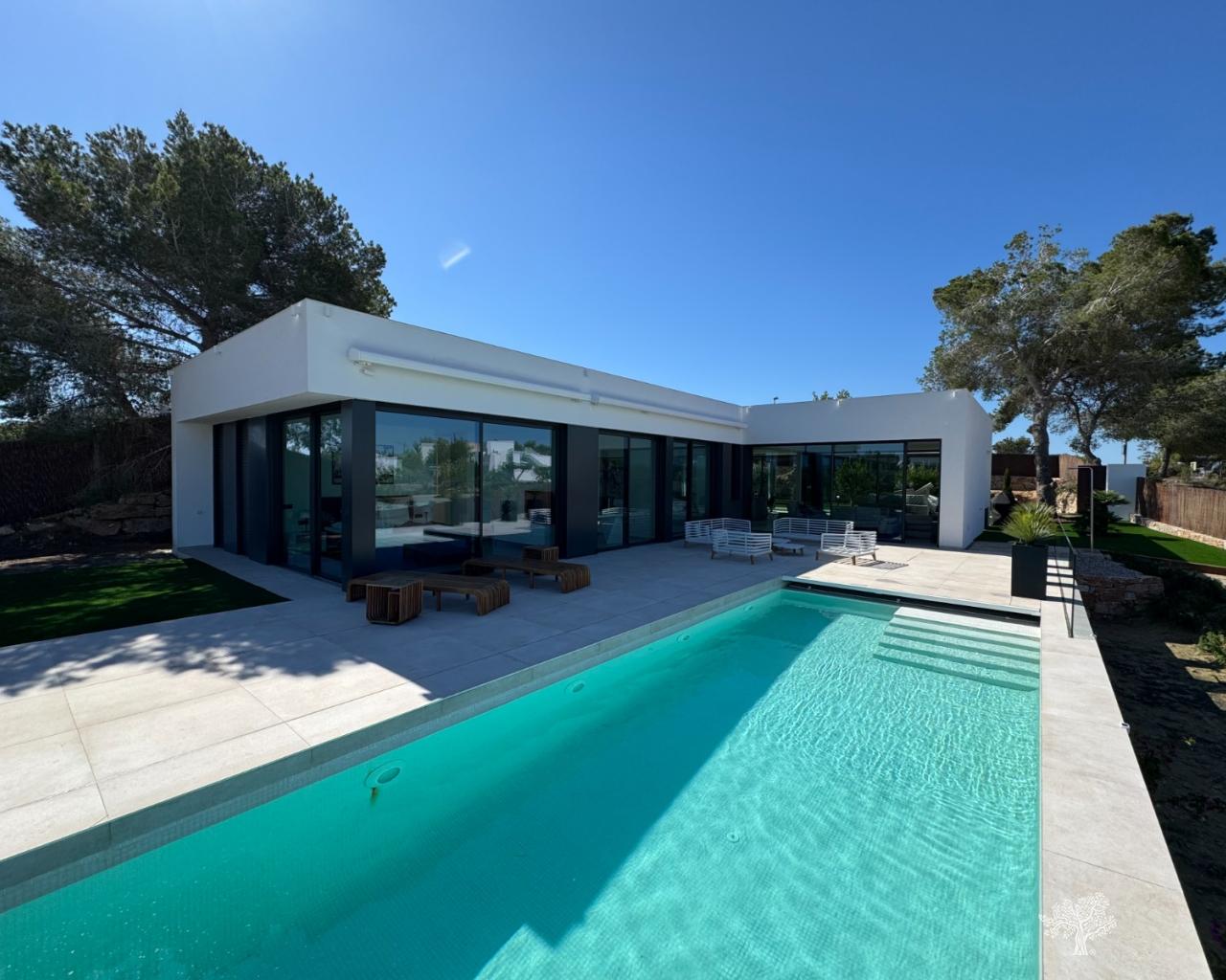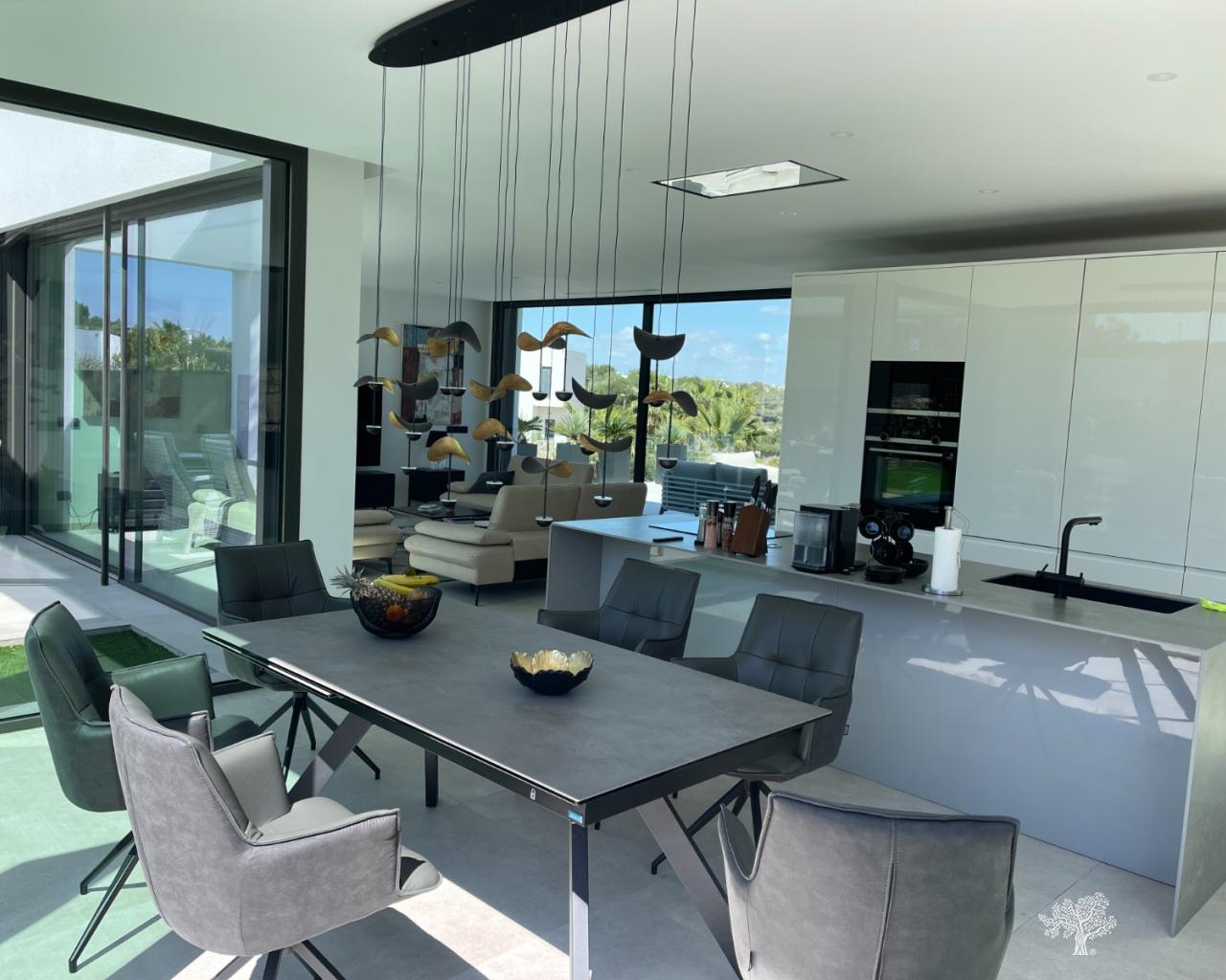 Modern style Enebro Villa with 3 bedrooms, 2 bathrooms, private pool, landscaped garden and underground garage. Situated in the heart of Las Colinas Golf with walking distance to the club house, golf course and all local services. Surrounded by mediterranean forest and the award winning 18 hole golf course. With additional security in the central island of this exclusive resort, this villa is located in the best Neighborhood. Furnished and decorated to a very high standard, with high end electric appliances in the kitchen, luxury pool with cover and heating pump. Garage space for 1 or 2 cars and additional parking for friends or visitors just outside the community. A/C hot and cold in all rooms with air zone control, floor heating on the main floor and LED lights in all rooms are only some of the features.