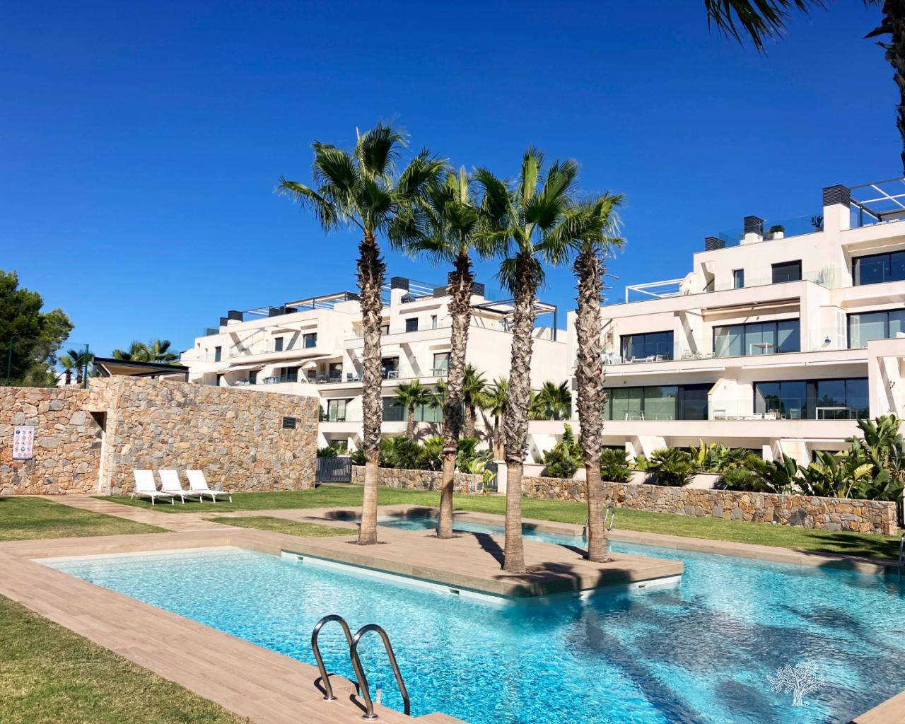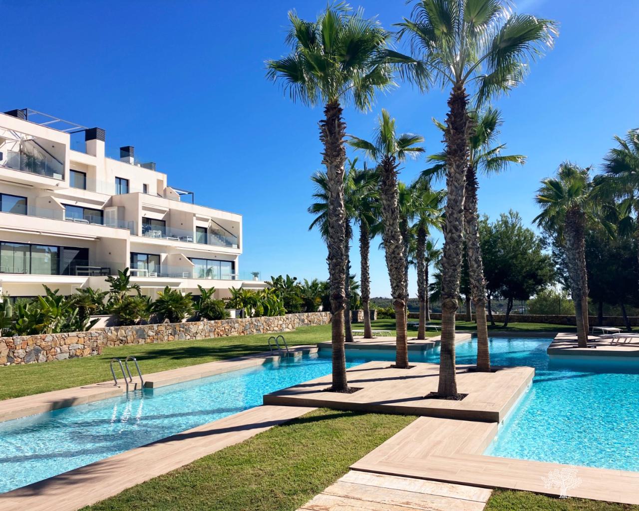 These Premium properties in Las Colinas Golf boast the very latest in home technology, high quality kitchen appliances, ducted air conditioning throughout, underfloor heating in all bathrooms (optional in the whole property), LED lighting throughout, motorized exterior shutters (bedrooms), beautiful landscaped gardens, communal areas and designer swimming pool. All apartments & Villas in the Resort are divided in several different private communities which are gated and each has its own unique setting.