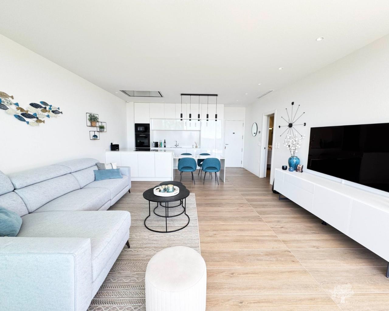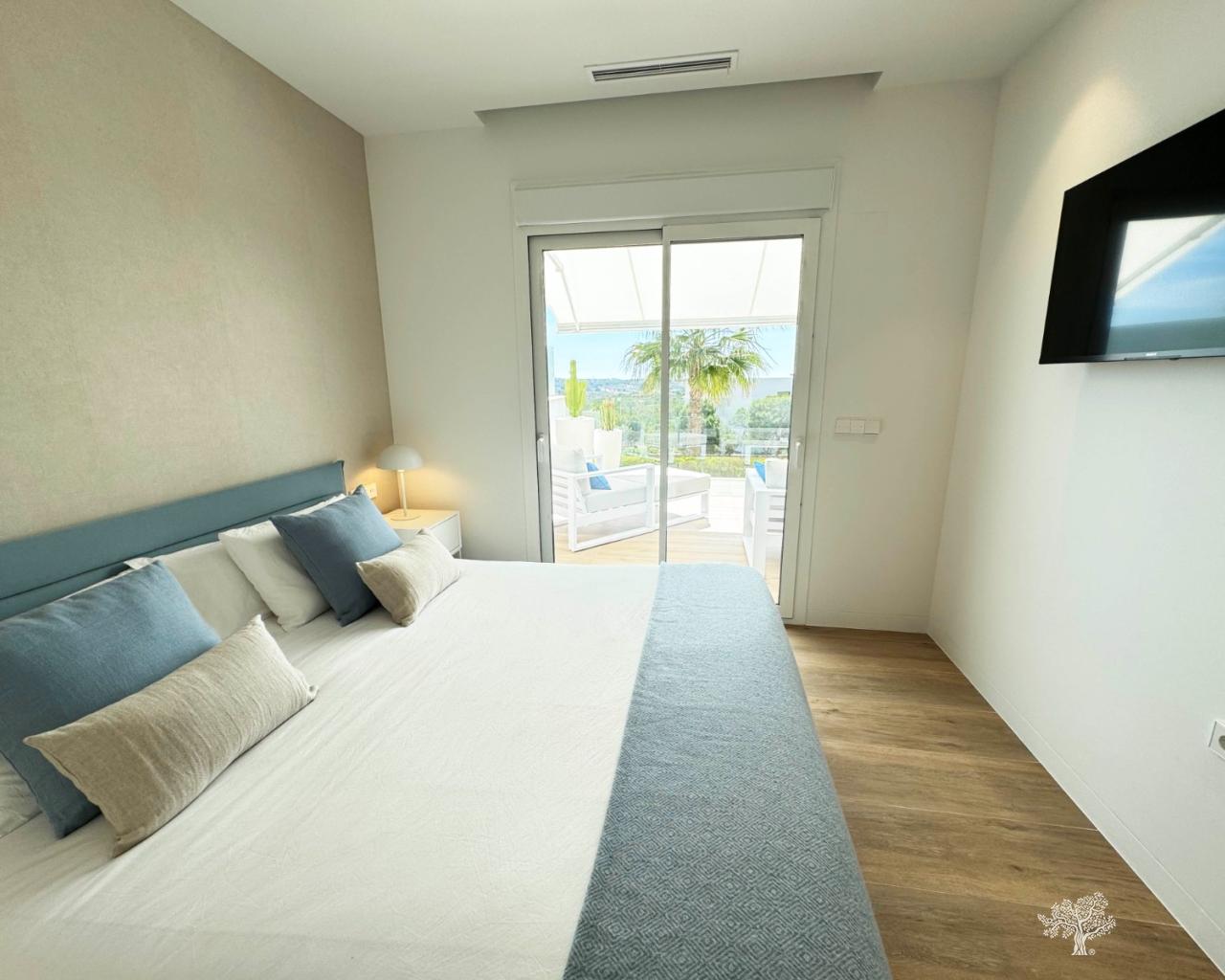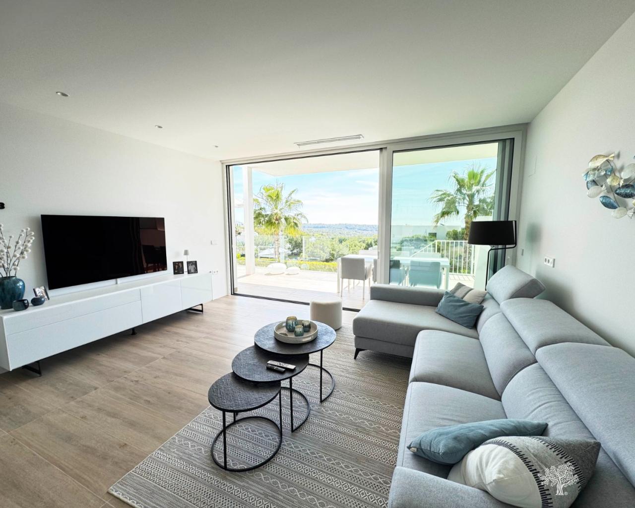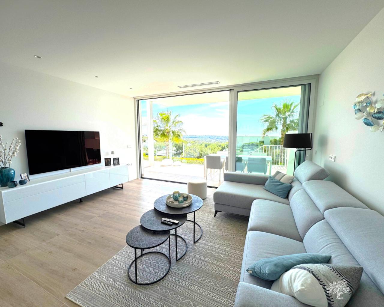 Beautiful modern apartment situated in the Nispero community, Las Colinas Golf with 2 bedrooms and 2 bathrooms. This ground floor apartment offers a spacious terrace that leads to the private garden, nicely landscaped and with direct access to the communal pool. The communal area also hosts a Gym and some toilets. The property comes fully furnished and includes a private parking space in the garage and a storage unit. Located on one of the highest points of the resort, this apartments provides open views from the terrace overlooking the forest and pool area. A/C with air zone system, electric floor heating in bathrooms and Bosch appliances in the kitchen are only some of the features to mention.