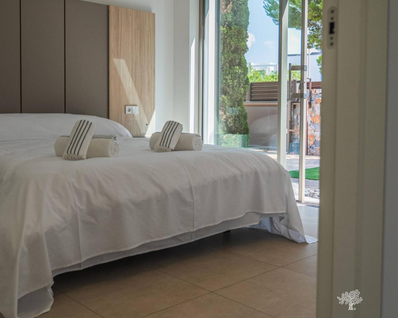 Beautiful modern style detached villa situated in olivo community with private pool and spacious garden. This villa consists of 4 bedrooms, 3 bathrooms + guest toilet, private pool with automatic cover and heating pump, spacious terraces with open views to the golf & sea. Very private and quiet location within the Olivo community. The villa is built on two levels with open views from the main terrace. This villa is being sold partly furnished and includes many extras such as smart home system, electric blinds, air con with air zone, floor heating on both levels of the house and cover and heating pump for the private pool.