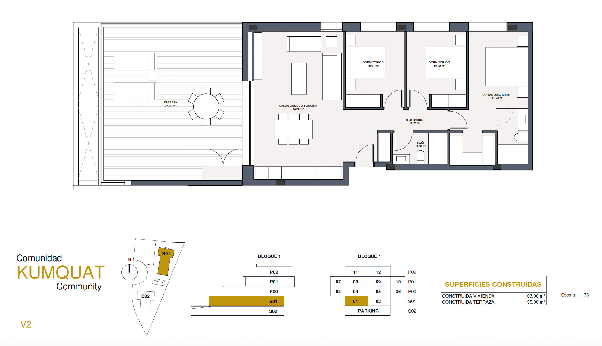 Modern apartment "Kumquat" with 3 bedrooms, spacious terrace, close to the golf course in Las Colinas Golf. Quality finishing, garage & storage space with each unit. Surrounded by nature reserve and mediterranean forest with south, south-west orientation.This apartment is being sold fully furnished, including all appliances in the kitchen, A/C hot /cold and electric floor heating in both bathrooms. Lift access to the property as well as pool and garage/storage. Open views to the forest and towards the sea including la manga.