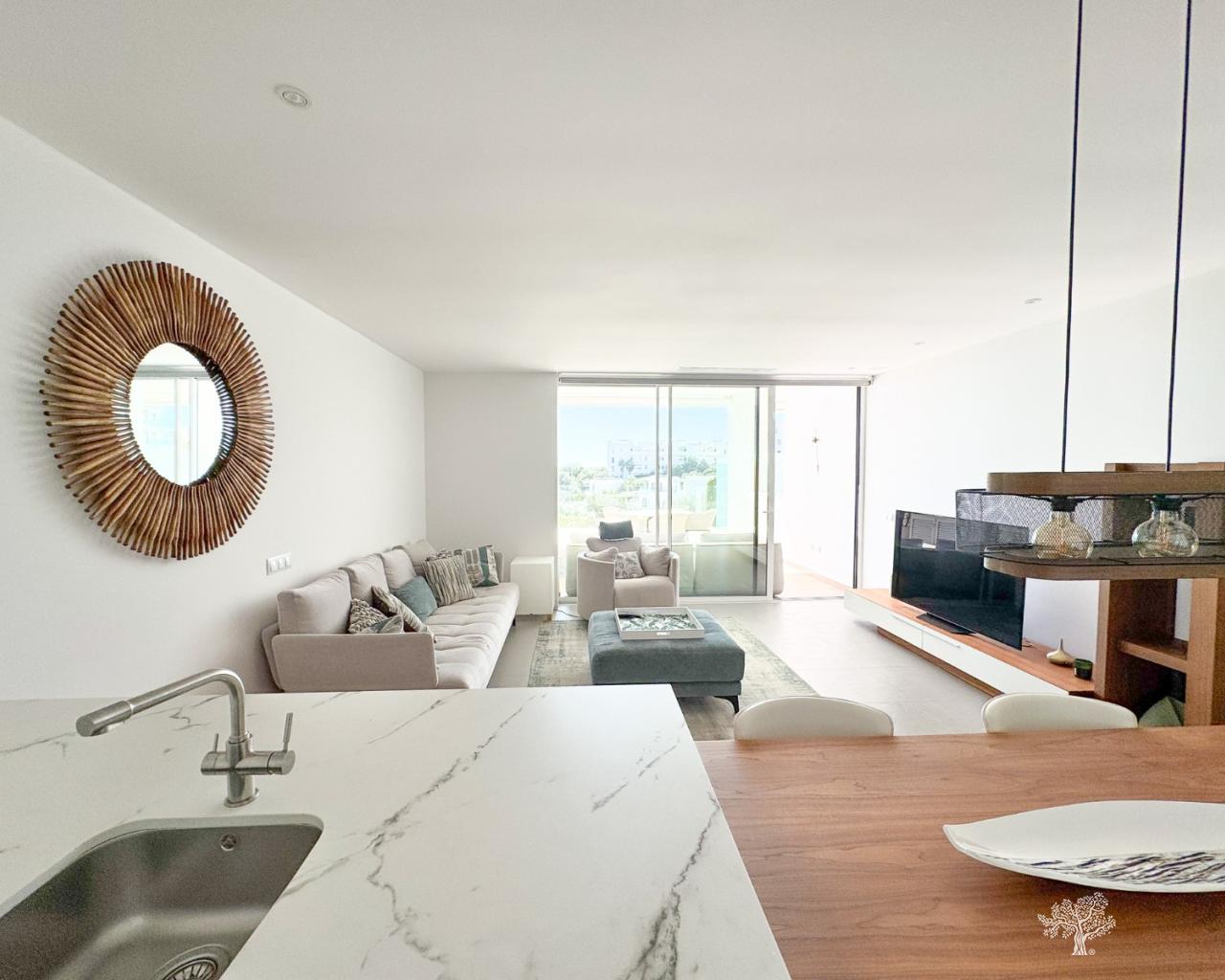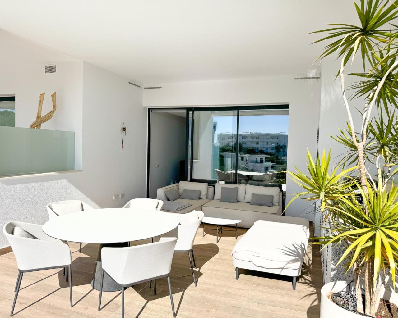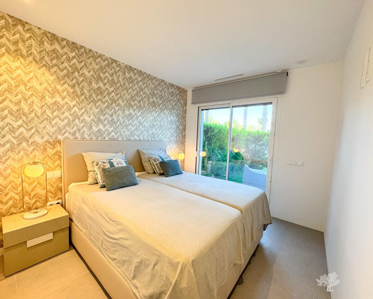 Modern ground floor apartment with 2 bedrooms 2 bathrooms and 2 terraces in community Naranjo, Las Colinas Golf. Spacious front terrace with nice views to the communal green area and the sea and private garden/back terrace for extra privacy and some shade in the summer. Underground garage space and storage as well as nicely designed communal gardens and pool. The building naranjo has recently been painted (2025) and is in very good condition. The property is being sold with all furniture.