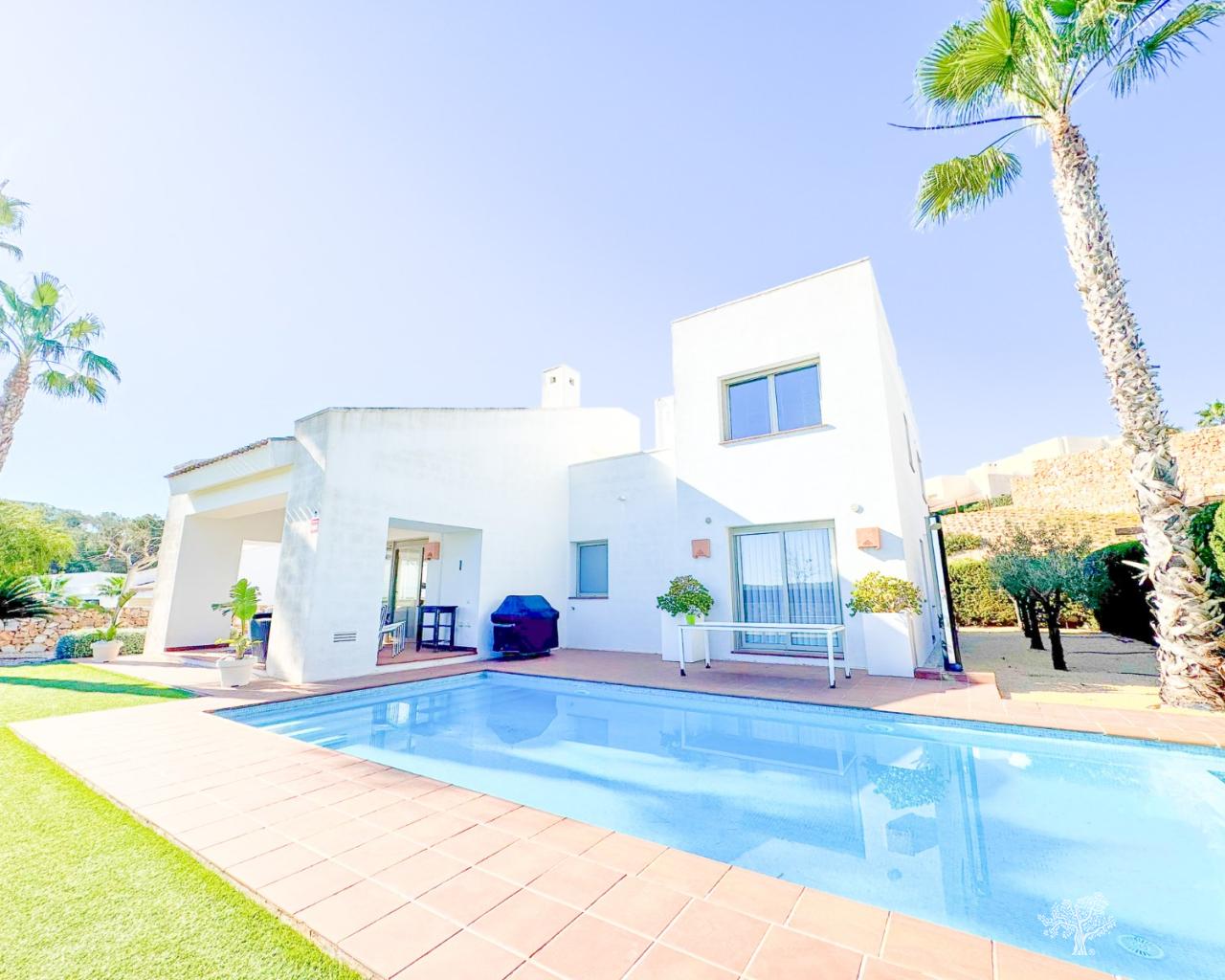 Traditional style detached villa with private pool and stunning golf views in community Jacaranda, Las Colinas Golf. With 4 bedrooms, 3 bathrooms, guest toilet, spacious terraces and landscaped garden. Offering 190m2 over two levels, with central gas heating, as well as air con system (hot/cold) and fire place. Storage cupboard near the private covered parking area. Solar panel system on the roof for better energy efficiency. Private plot within this small community in the heart of las colinas golf & country club. Only 5 minute walk to the club house and all local services.